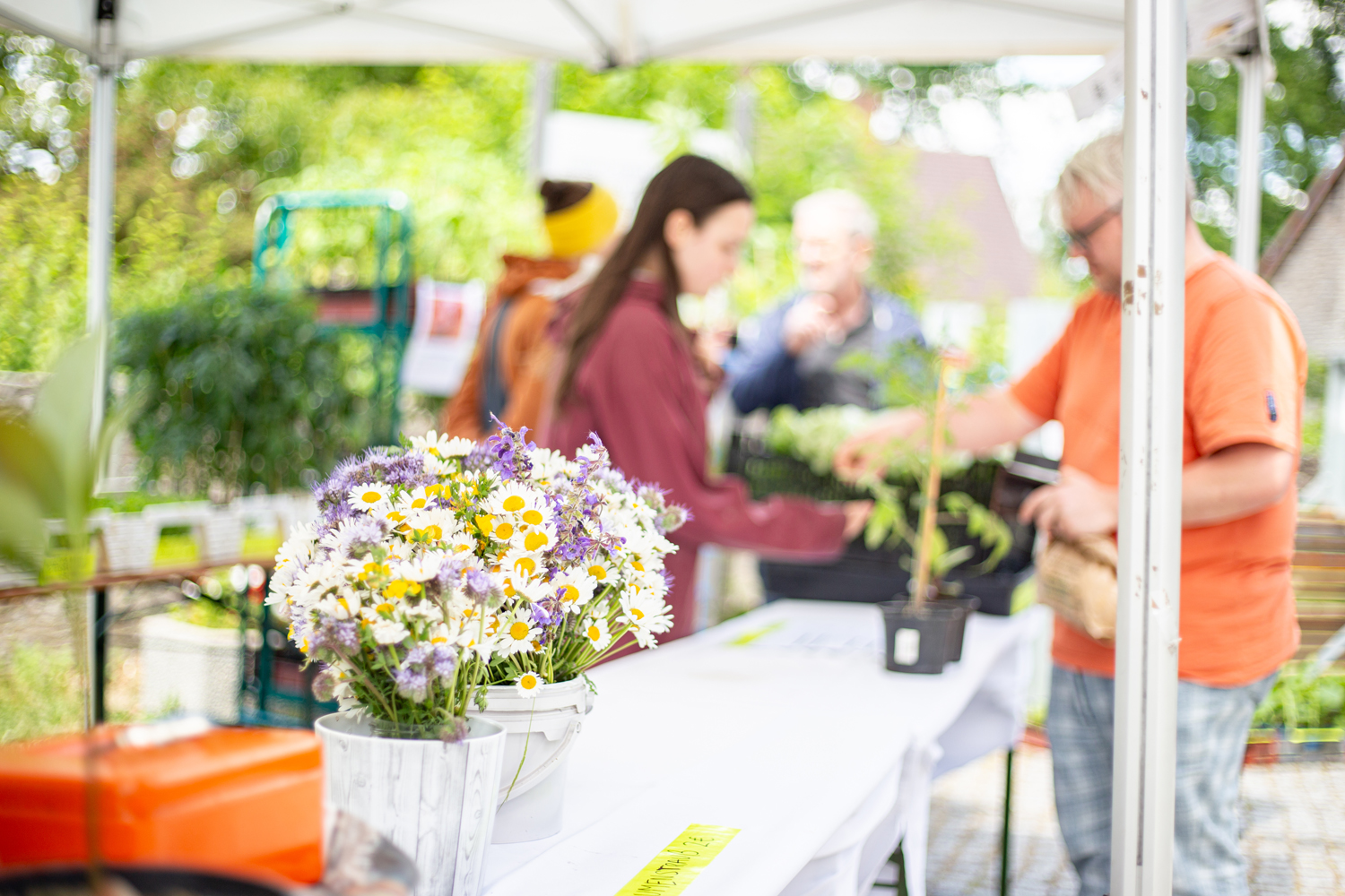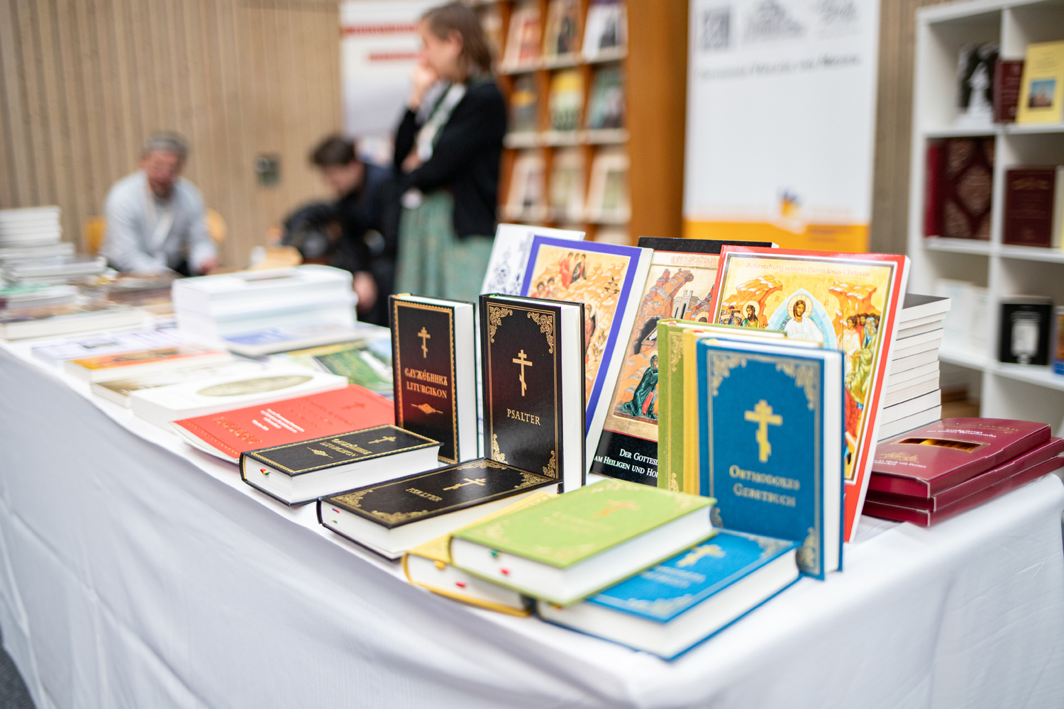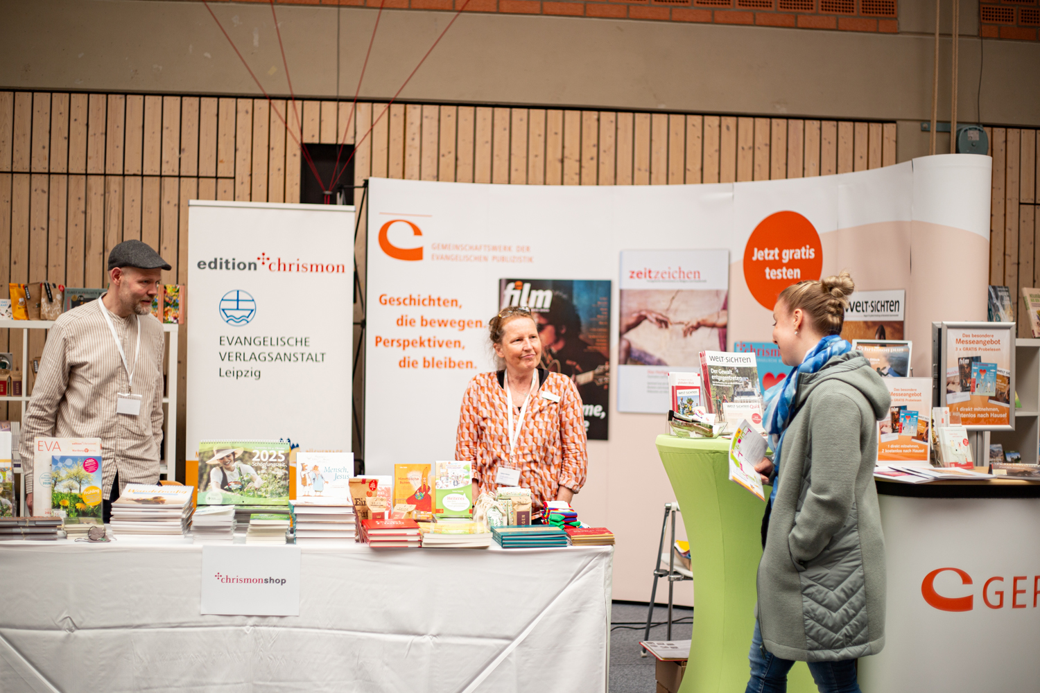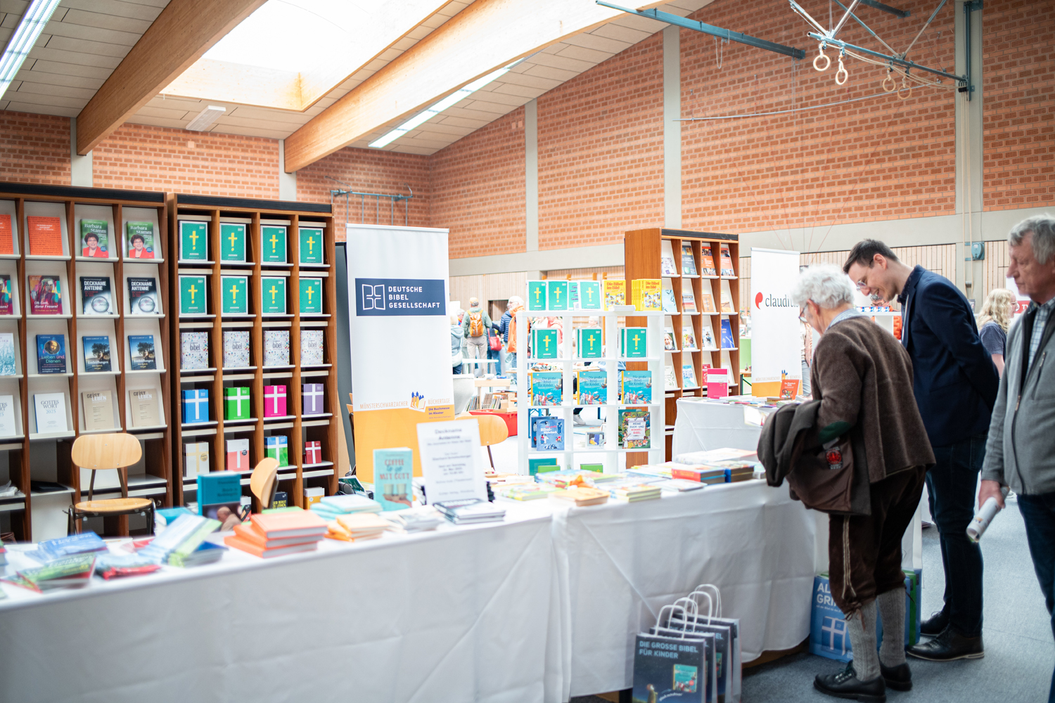 Mit vielen Besucherinnen und Besuchern haben die zweiten Münsterschwarzacher Büchertage begonnen. Schon auf dem Kirchplatz luden die ersten Stände von Trusted Craft Design, der Druckerei Benedict Press, dem Fair-Handel und der Klostergärtnerei zum Stöbern, Entdecken und Verweilen ein. Am Stand der Druckerei konnte mit einer traditionellen Buchpresse ein tolles Mitbringsel gemacht werden, die Gärtnerei verkaufte eigens gezogene Bio-Jungpflanzen. In der großen Messehallte erwartete die Gäste eine Vielfalt an Verlagen mit ihrem aktuellen Programm: von Kinderbüchern bei Don Bosco, die deutsche Akademie für Kinder- und Jugendliteratur über die Bandbreite an renommierten christlich-spirituellen Verlagen wie echter, Herder, Chrismon, Claudius, eos, Verlag Neue Stadt. Tyrolia, Friedrich Pustet, dem Pilger-Verlag, Michaelsbund und natürlich dem klostereigenen Vier-Türme-Verlag bis zu orthodoxen Verlagen und Medien.