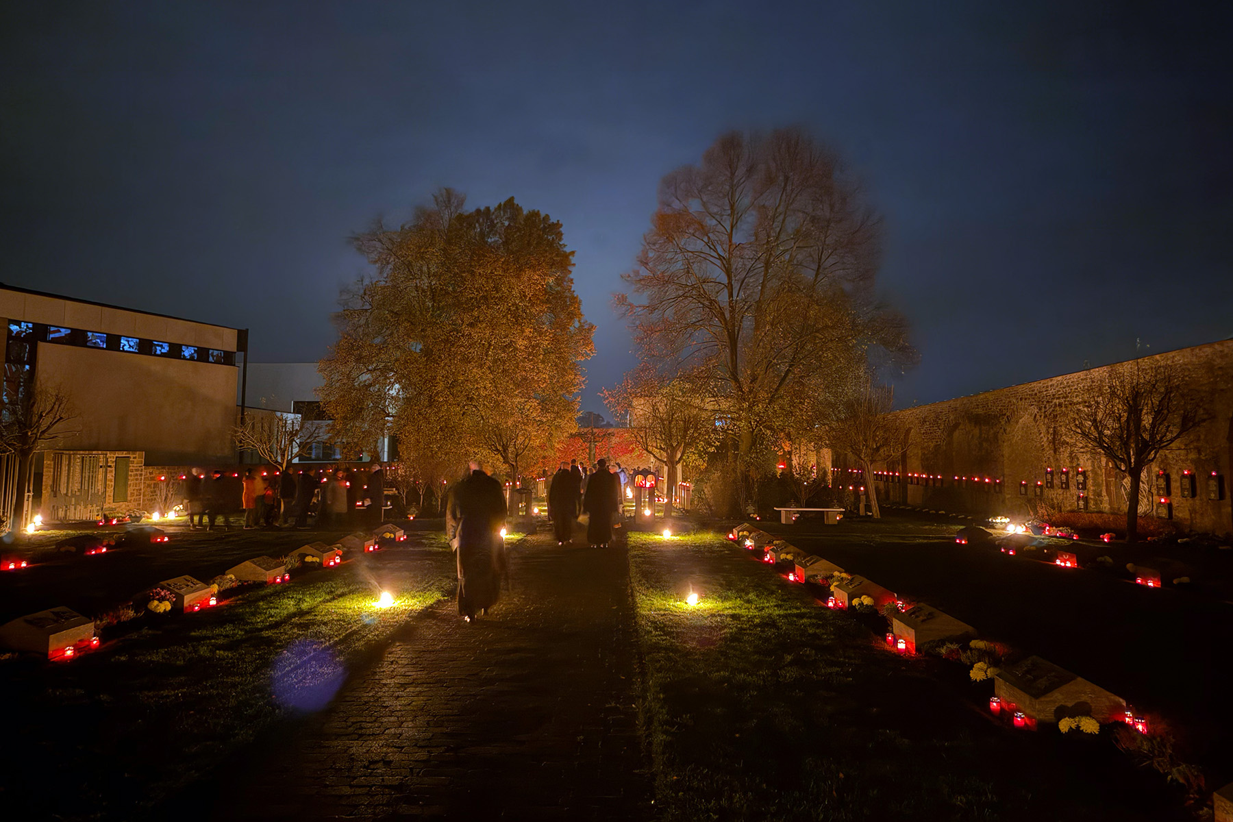 Bereits am Vorabend hatten die Mönche zu einer besonderen Komplet eingeladen – außerhalb der Mauern der Abteikirche. Stattdessen ging es auf den Klosterfriedhof, der sich durch die vielen Kerzen in ein Lichtermeer verwandelt hatte. Dort fand das traditionelle Gedenken an die verstorbenen Mitbrüder statt.