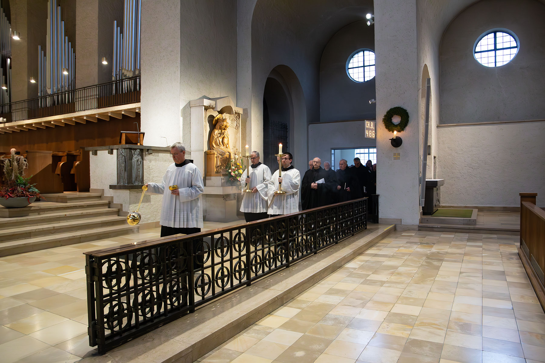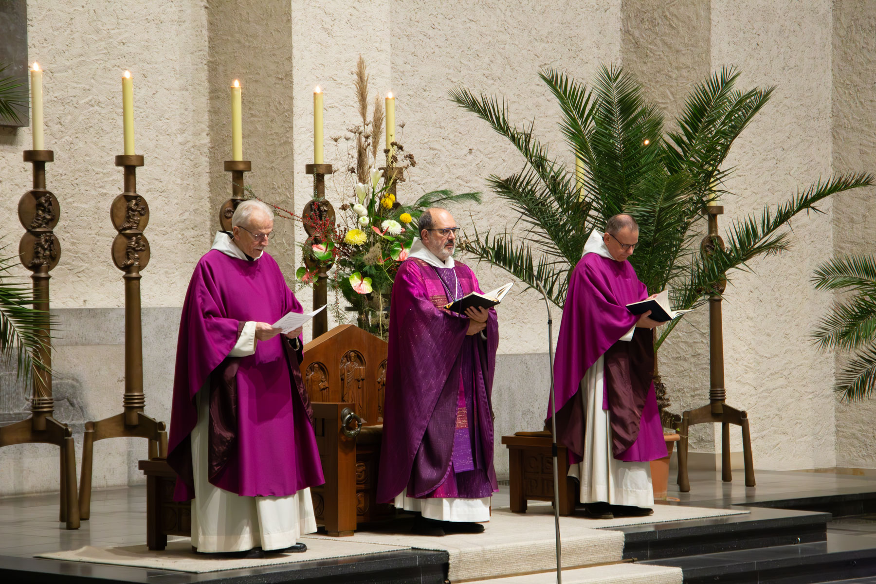 „Wir feiern Sonntag, den Tag der Auferstehung. Wie passend, dass Allerseelen dieses Mal auf einen Sonntag fällt. Dass uns bewusst wird, worum es eigentlich geht – um Auferstehung“, betonte Abt Michael Reepen zu Beginn des Konventamtes. „Es geht nicht darum, im Grab zu bleiben, sondern es als Durchgang zu sehen. Zum neuen Leben, zum Leben mit Gott. Das dürfen wir hoffen für alle unsere Verstorbenen.“