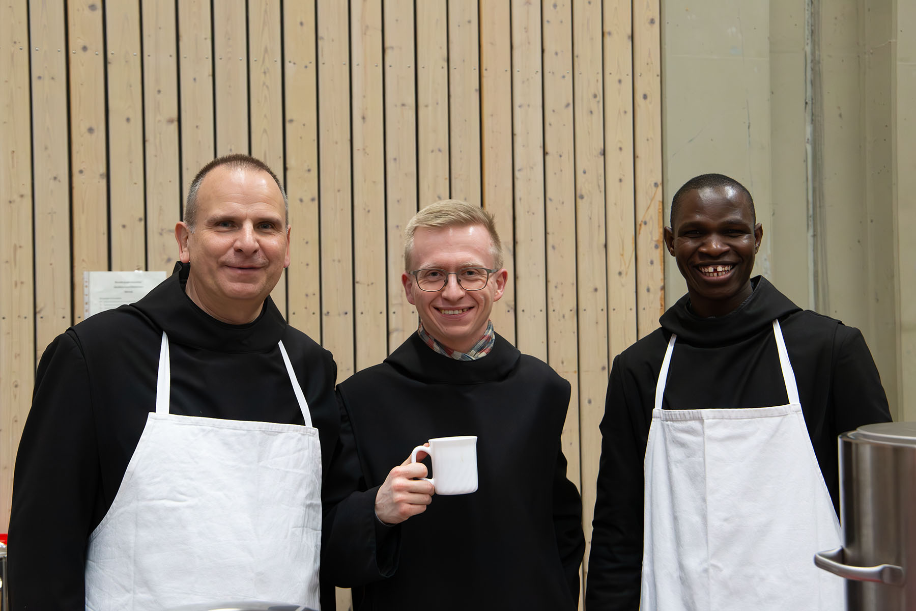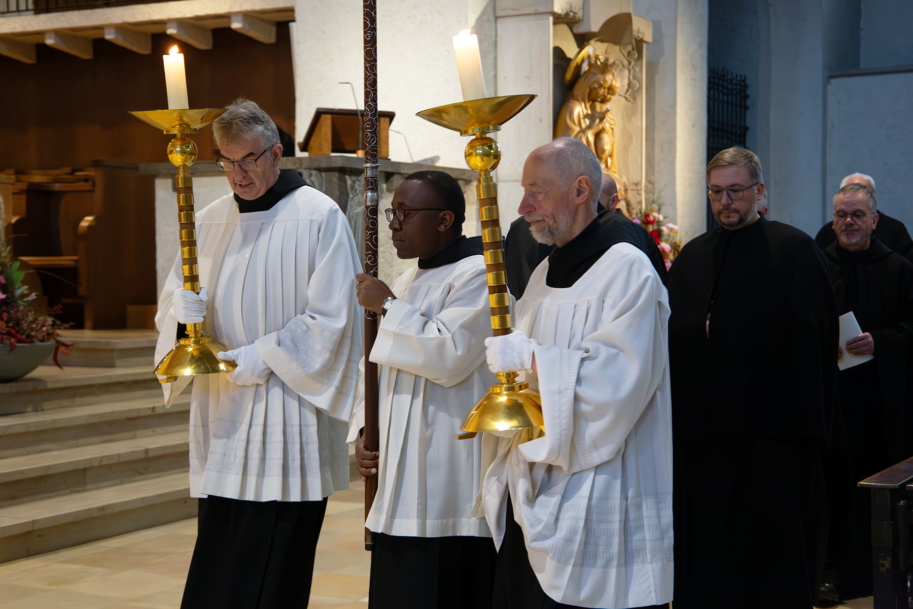 Auftakt bildete ein gemeinsamer Gottesdienst. Dabei standen Worte aus dem Epheserbrief im Mittelpunkt. Paulus ermutigt die Gemeinde, in Liebe und Demut miteinander zu leben – geeint durch das Band des Friedens. Dass das oft nicht einfach ist, darauf ging Abt Michael Reepen in seiner Predigt ein. Bereits der heilige Benedikt machte die Erfahrung, dass sich in einer Gemeinschaft nicht immer der Frieden wahren lässt. Auch heute stellen stetige Veränderungen das Miteinander vor Herausforderungen.