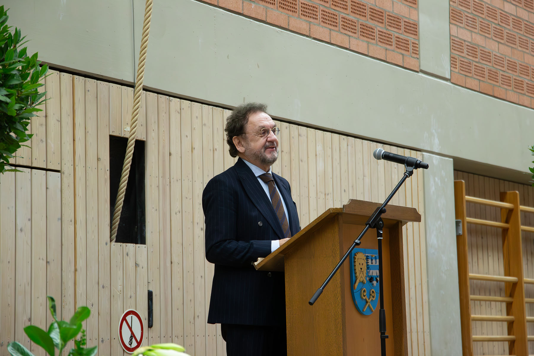 Darüber hinaus stand ein Vortrag von Prof. Dr. Heribert Prantl auf dem Programm. Der Jurist, Journalist und politische Publizist referierte zum Thema „Den Frieden gewinnen. Die Gewalt verlernen“. Dabei sprach er über den Hass als entmenschlichende Kraft – ansteckend und mit monströser Dynamik. Noch größere Beachtung fand bei seinen Ausführungen jedoch der Frieden. Dieser ist nicht automatisch gegeben. Vielmehr muss Frieden, so Prantl mit Verweis auf den Philosophen Kant, immer wieder neu geschaffen werden.