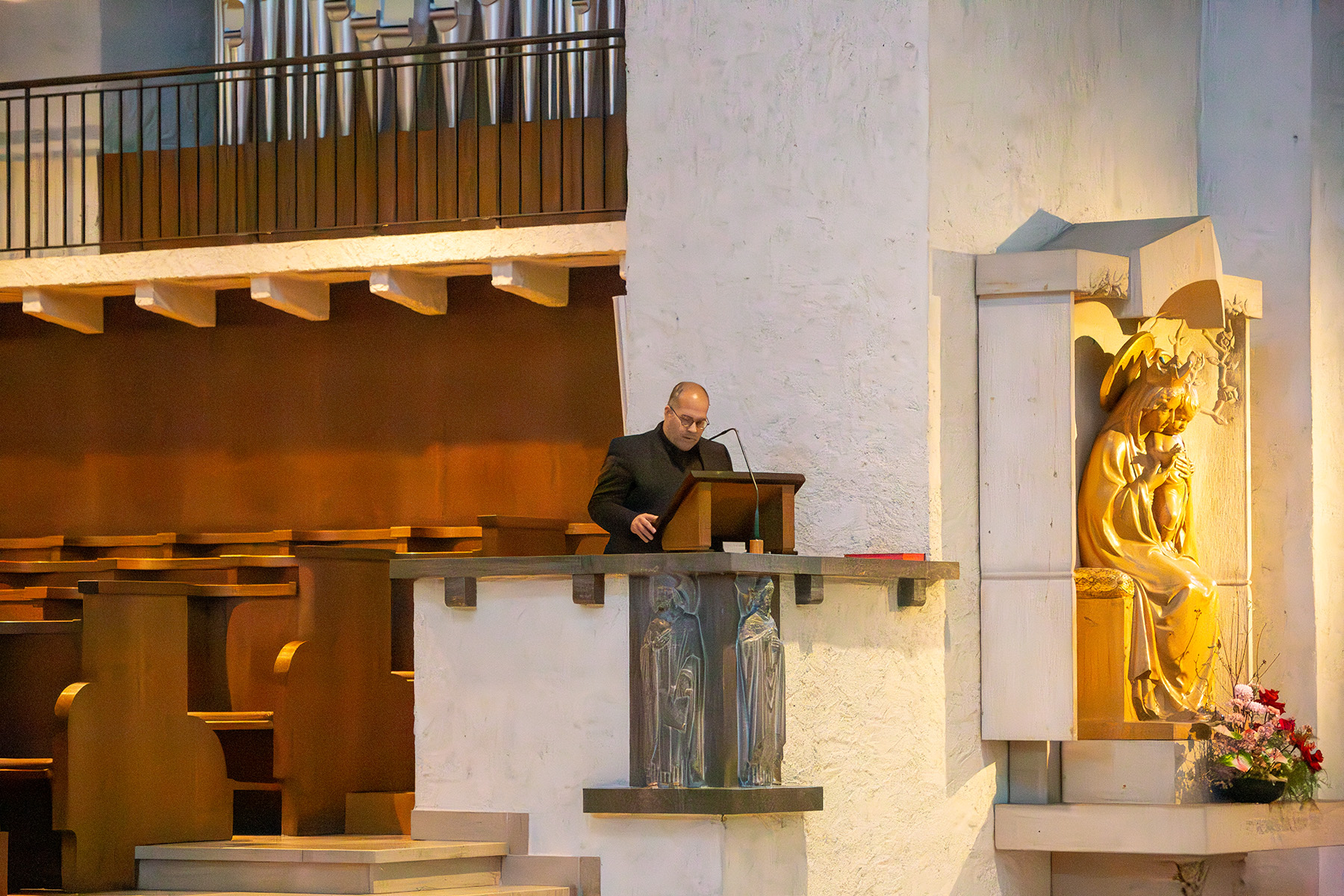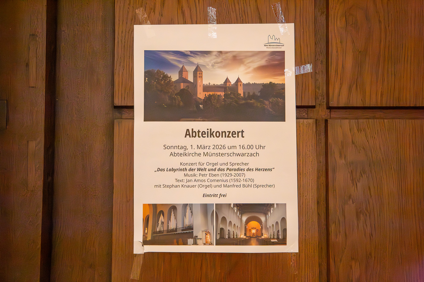 „Die Aufführung von ‚Das Labyrinth der Welt und das Paradies der Herzen‘ passt wunderbar in die Fastenzeit“, erklärte P. Dominikus Trautner. Er hatte das Konzert in der Abteikirche Münsterschwarzach organisiert. „Der Irrweg des Pilgers und seine Suche nach innerer Einkehr – das Werk spiegelt Themen wider, die uns in der vorösterlichen Zeit beschäftigen. Darüber hinaus war es uns eine große Freude, dem selten gespielten Orgelzyklus eine Bühne zu bieten.“