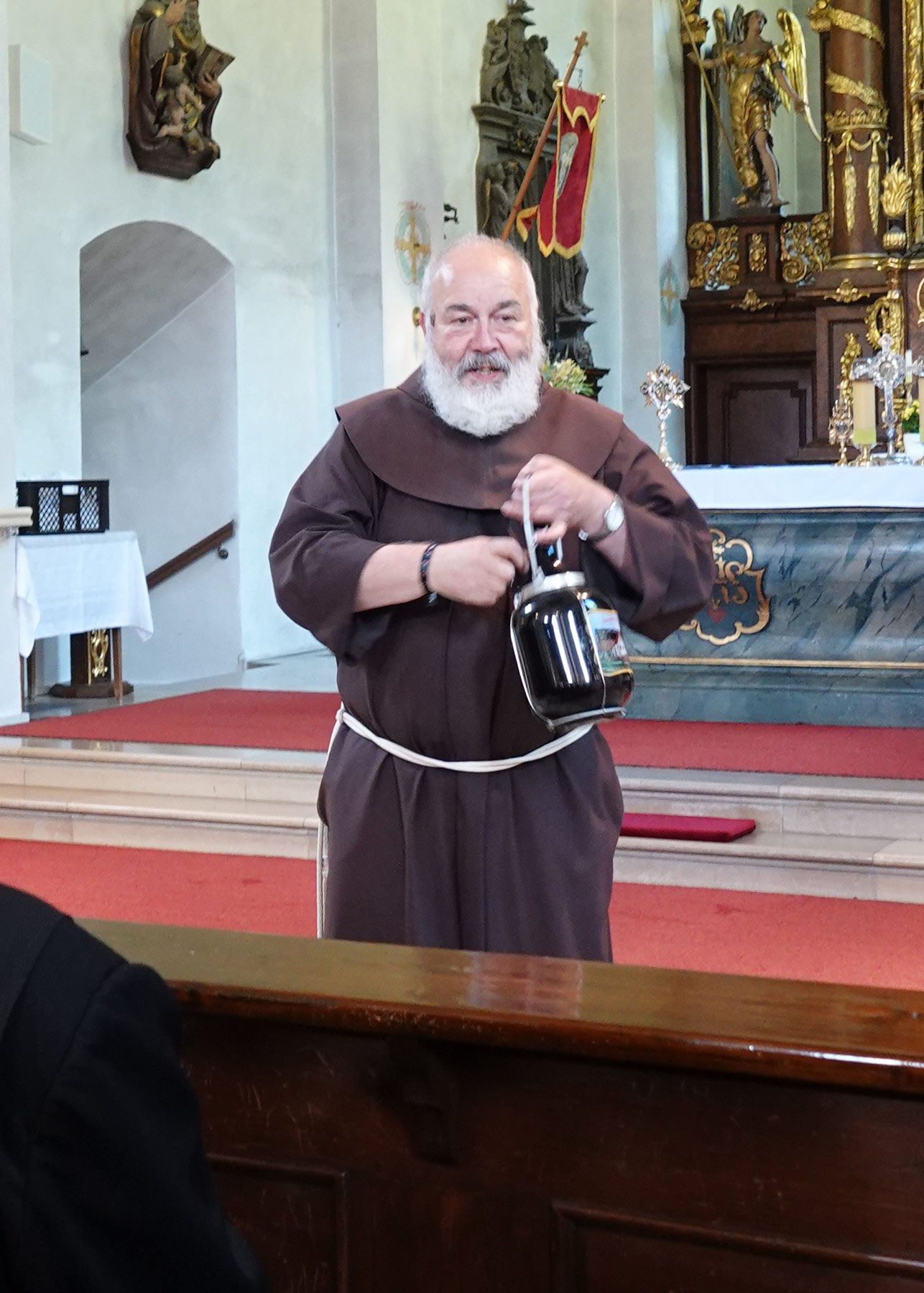Den Abschluss bildete eine Begegnung mit P. Korbinian, der mit vier weiteren Brüdern aus dem Franziskanerorden den Kreuzberg belebt und die Wallfahrer betreut.