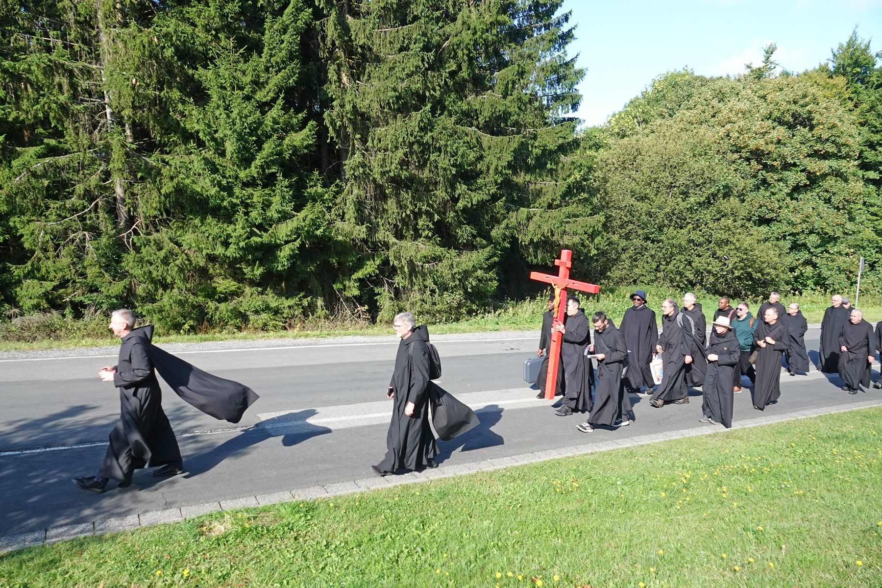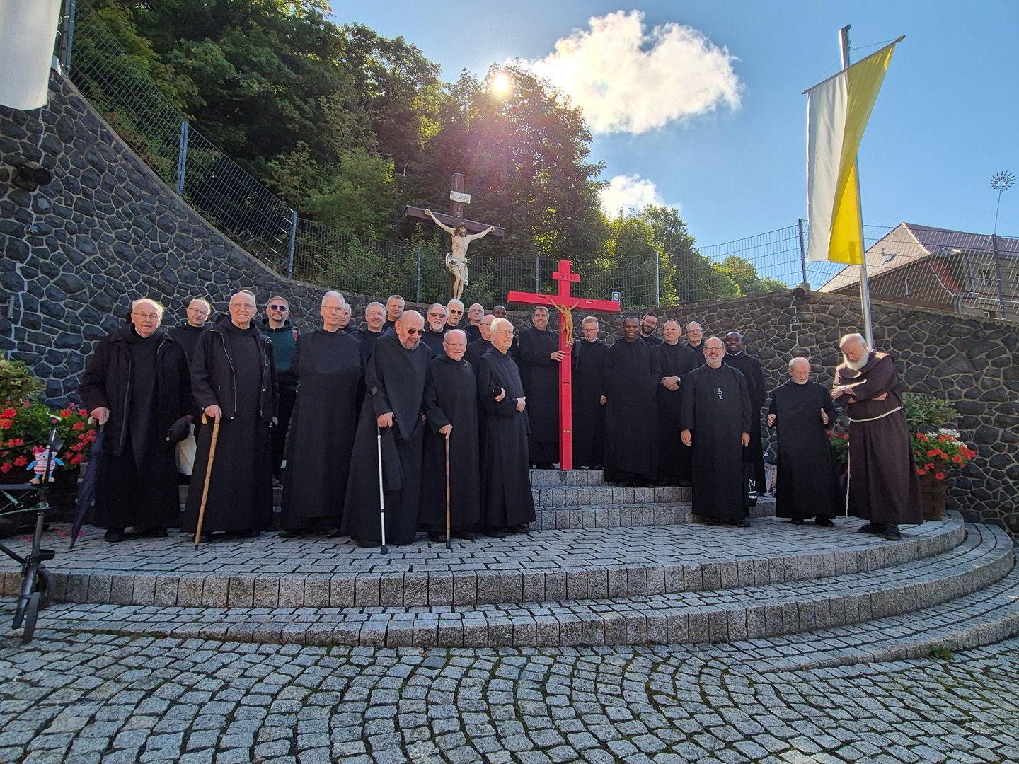 „Pilger der Hoffnung“ – unter diesem Leitwort steht das Heilige Jahr 2025. Als Hoffnungspilger haben auch wir Mönche von Münsterschwarzach uns auf den Weg gemacht. Am Samstag, den 6. September, unternahm der Konvent eine Wallfahrt auf den Kreuzberg in der Rhön. Der Tag stand ganz unter dem Zeichen des Kreuzes, das uns an die liebende Hingabe Jesu Christi erinnert und darum ein Hoffnungszeichen ist für die Welt.