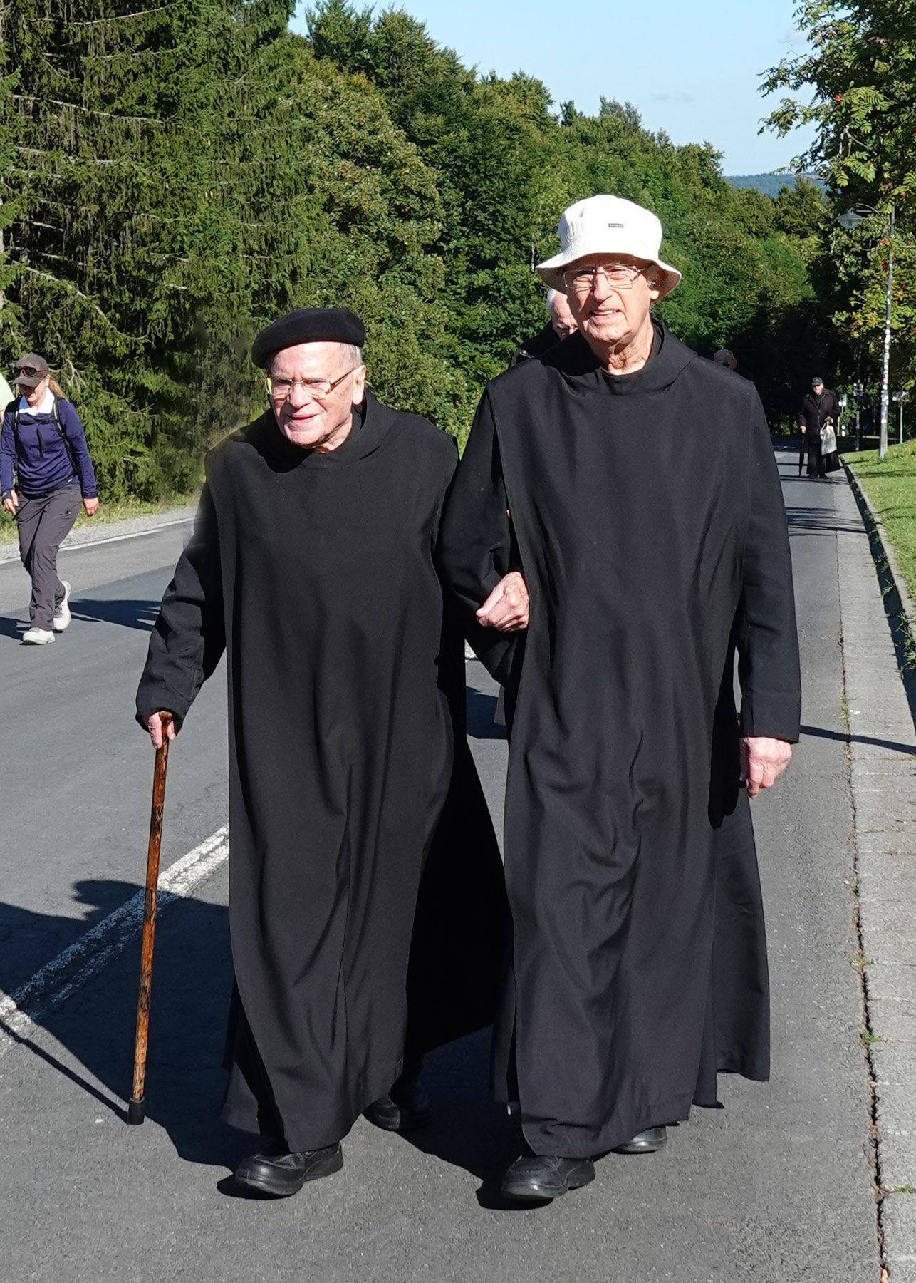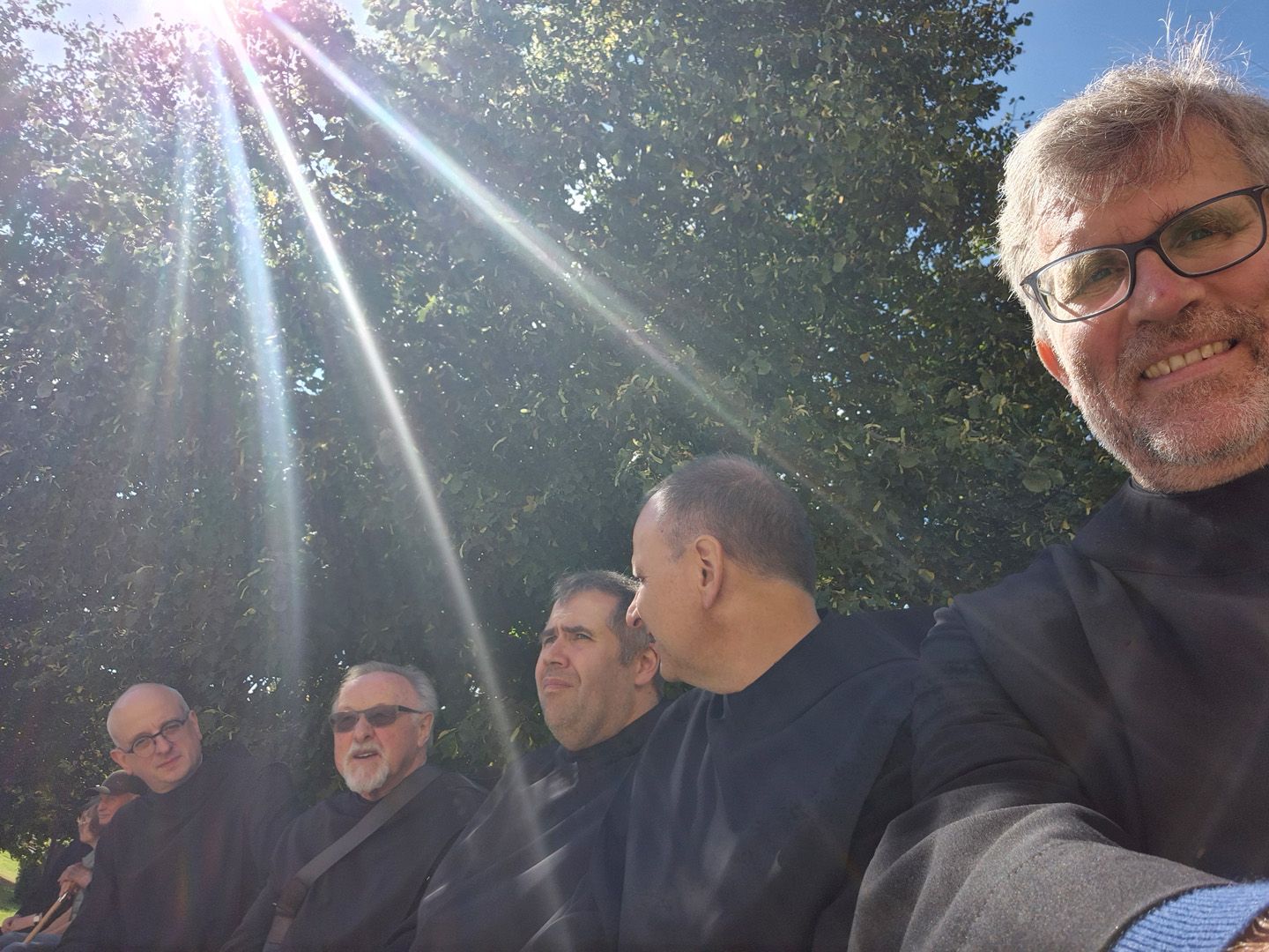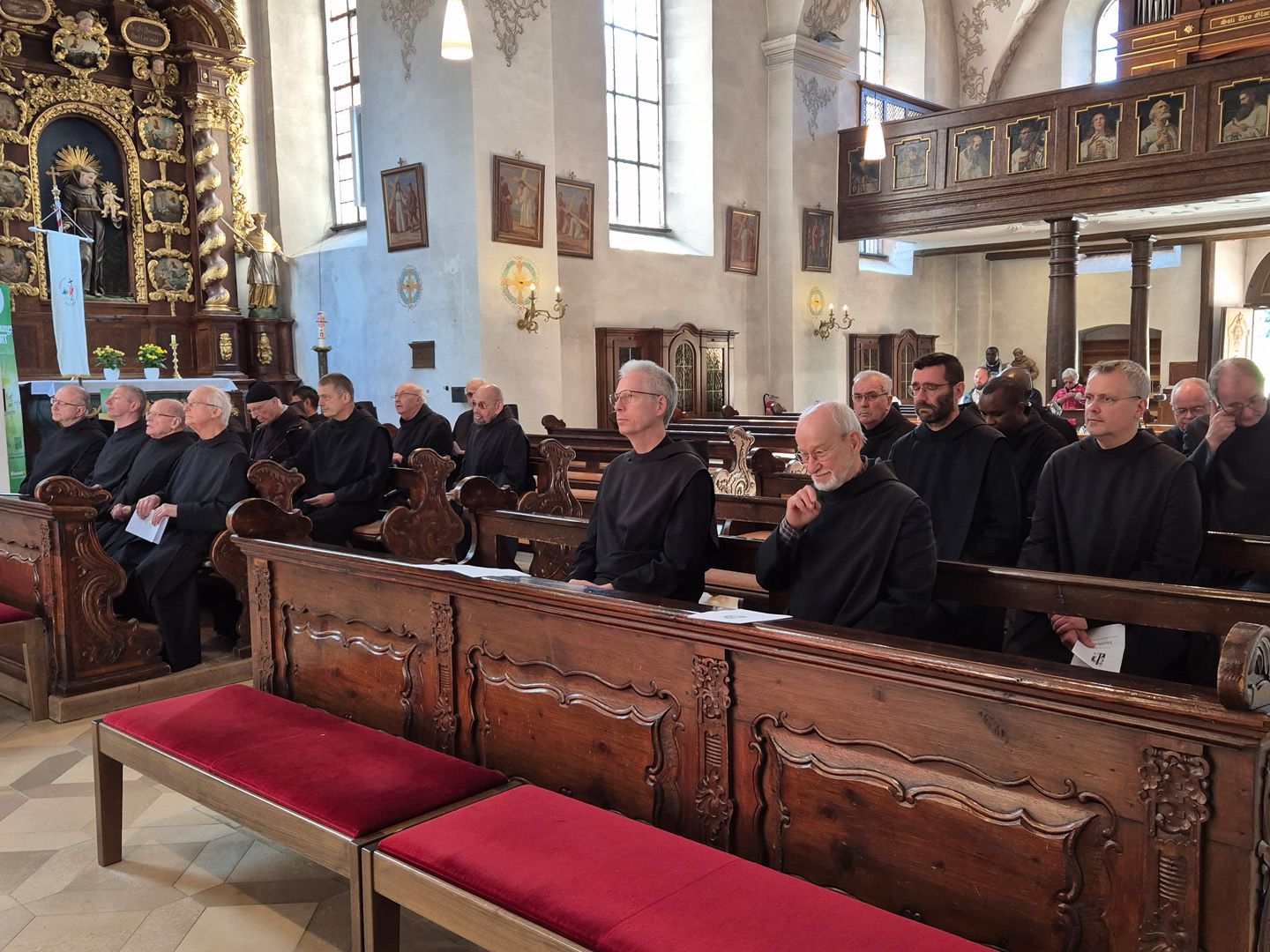 Eine besondere Verbindung zwischen uns Benediktinern von Münsterschwarzach und den Franziskanerbrüdern auf dem Kreuzberg entstand übrigens vor inzwischen 84 Jahren aus der Not der Zeit heraus: 1941 wurde die Abtei Münsterschwarzach von der Gestapo aufgehoben und ein Teil des Konventes (sofern nicht ohnehin schon zum Kriegs- oder Arbeitsdienst eingezogen) kurzerhand auf den Kreuzberg verfrachtet. Weder wussten die Münsterschwarzacher Patres, wohin die Reise ging, noch wussten die Franziskanerbrüder auf dem Kreuzberg, dass neue Mitbewohner zu ihnen unterwegs waren. Als sie dann überraschend vor der Türe standen, fanden sie freundliche Aufnahme und für mehrere Wochen ein neues Zuhause.