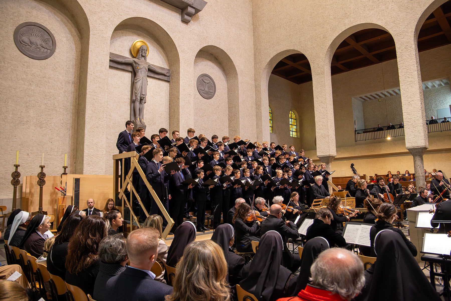 Die Abtei Münsterschwarzach hat am Tag der Deutschen Einheit zu einer Reise in die Welt der Barockmusik eingeladen. Das Konzert stand ganz im Zeichen der Werke von Johann Sebastian Bach, einem der großen Komponisten dieser Epoche. Für eine gelungene Umsetzung sorgten das Freiburger Barockorchester zusammen mit dem Windsbacher Knabenchor unter Leitung von Ludwig Böhme. Rund 1.500 Zuhörerinnen und Zuhörer sorgten für ein volles Gotteshaus. Der Abend endete mit großem Applaus und Standing Ovations.