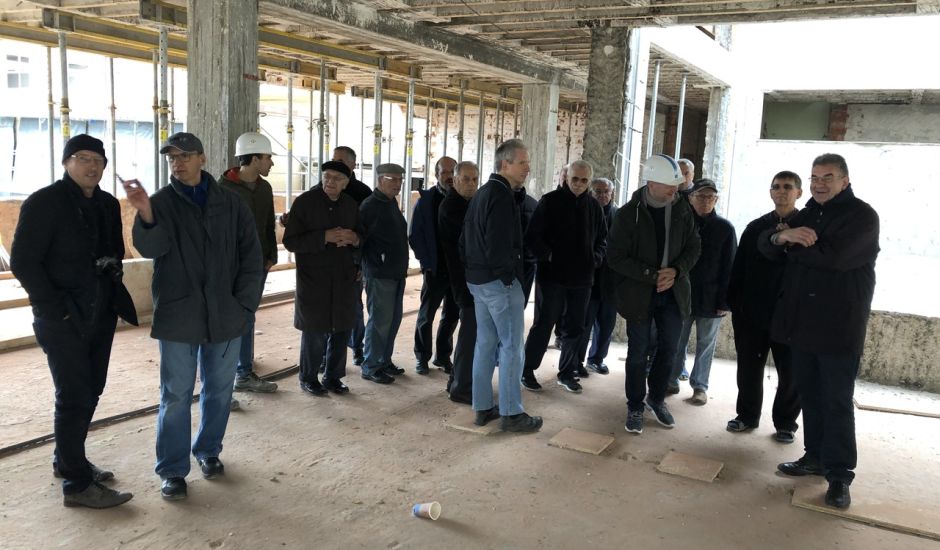 Mönche besichtigen Baustelle des EGM