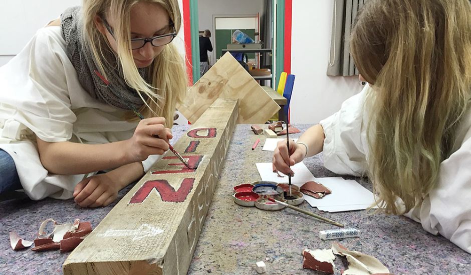 Mit Farbe, Pappmaché und Draht