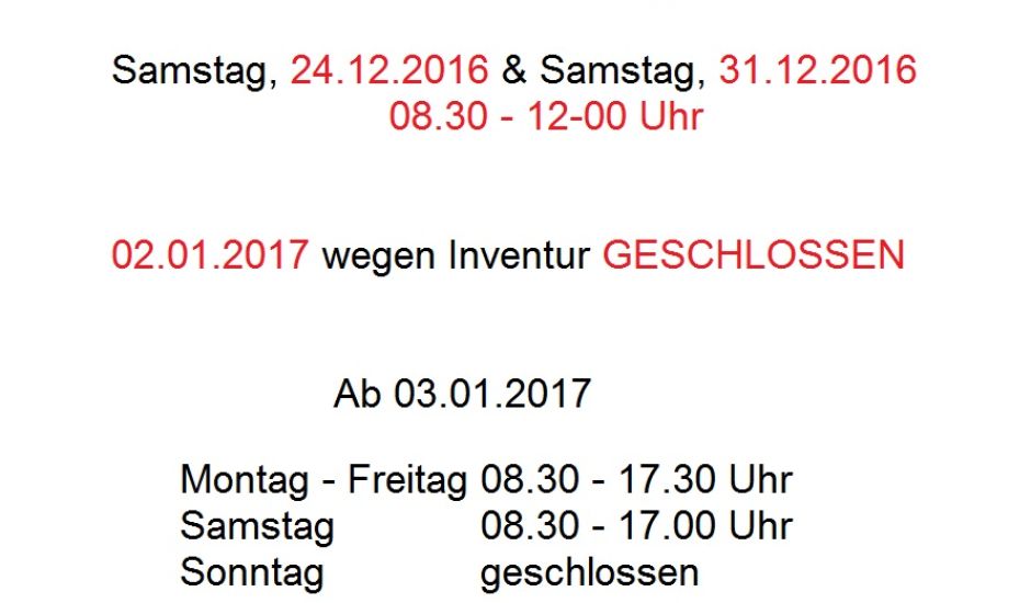 Geänderte Öffnungszeiten