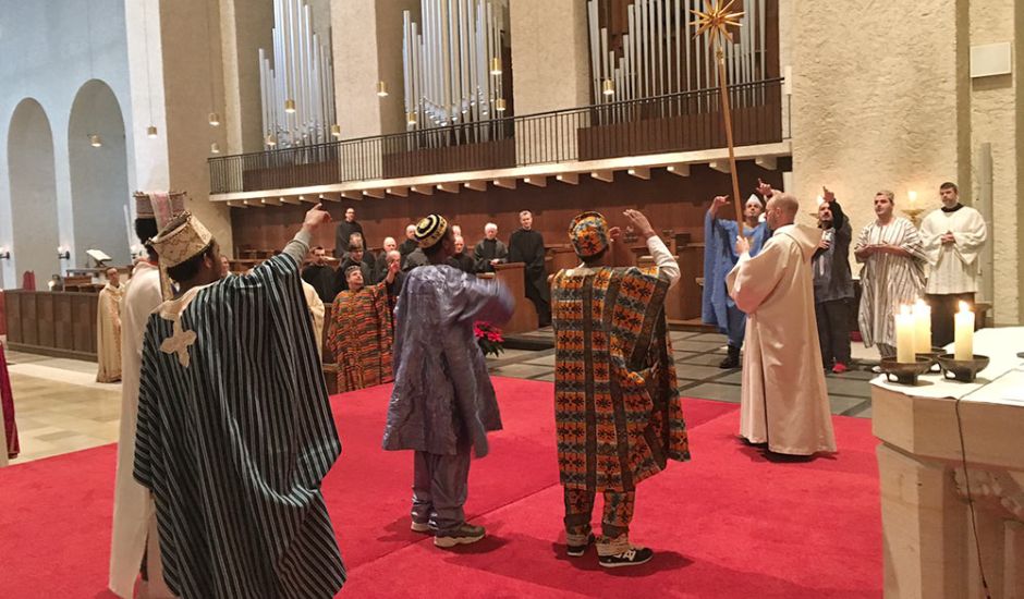 Mönche und Flüchtlinge folgten dem Stern zur Krippe