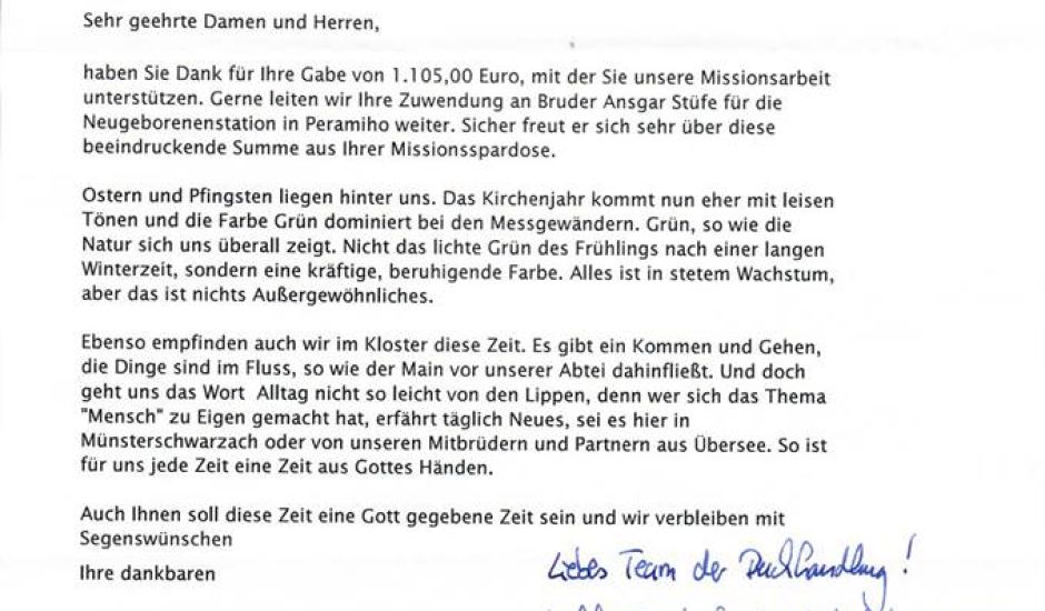 In Afrika sterben immer noch viele Babys wenige Tage nach der Geburt. Um die ärztliche Versorgung zu finanzieren braucht das Krankenhaus in Peramiho Hilfe. Die Geräte kosten zwischen 200€ und 2000€. Das Team der Buch und Kunsthandlung konnte Pater...