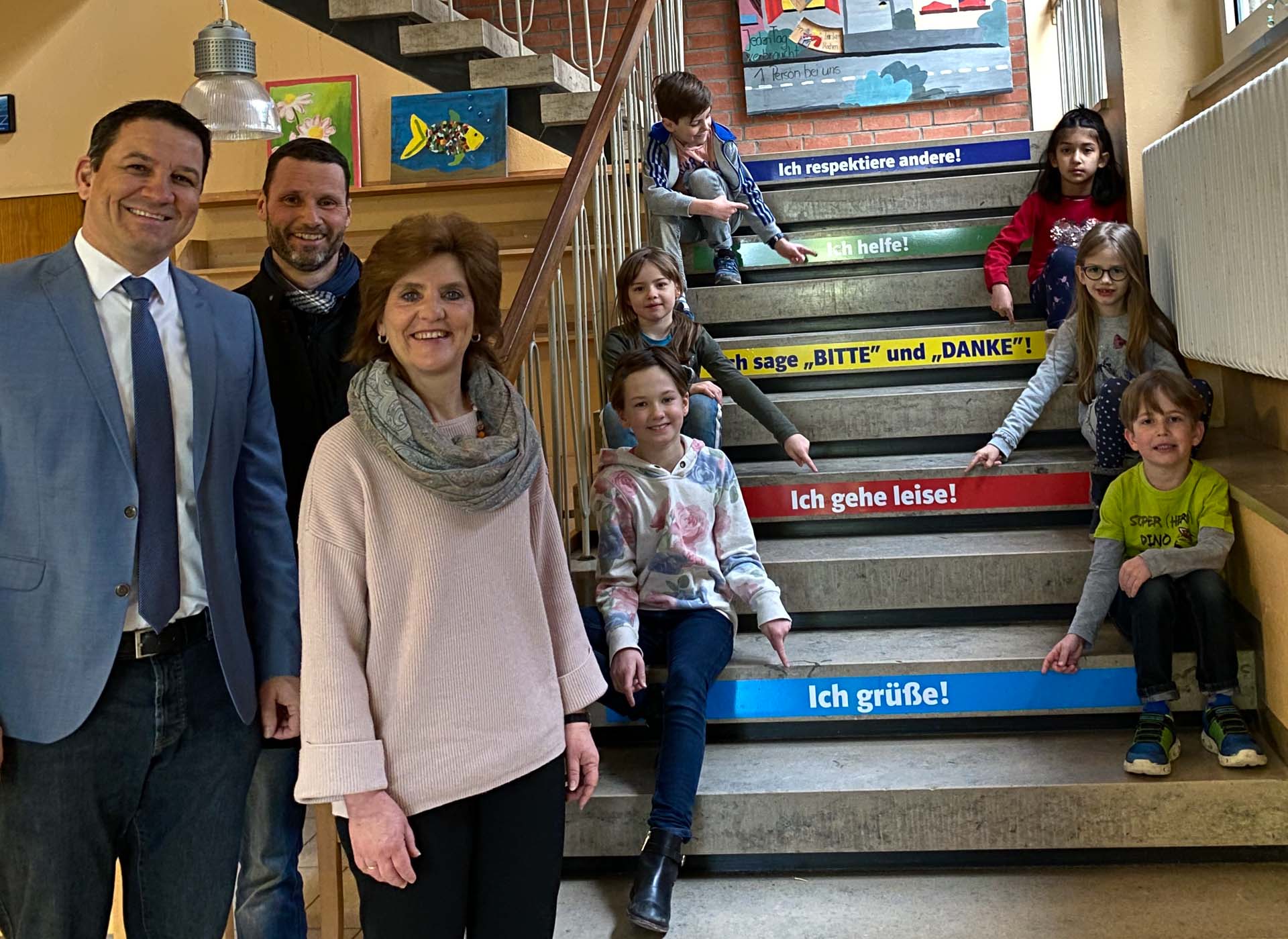 Die Druckerei "Benedict Press" der Abtei Münsterschwarzach hat mit einer kostenlosen Produktion von Aufklebern ein Projekt der Volksschule Randersacker unterstützt. Auf zwei Treppen der Schule sind nun Aufkleber mit Höflichkeitserinnerungen wie "Ich sage 'Bitte' und 'Danke'!" angebracht, die von der Klosterdruckerei kostenlos hergestellt wurden. Die Initiative geht auf Bürgermeister Michael Sedelmayer zurück. So soll nun im Alltag an ebenso alltägliche wie selbstverständliche Umgangsformen erinnert werden.