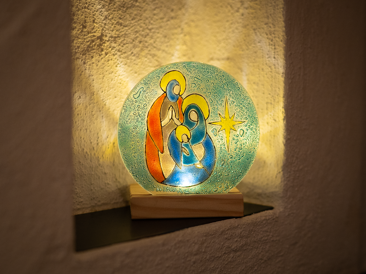 Bild: Glaskrippe aus recyceltem Glas von unserem Lieferanten "Calypso" aus Chile.