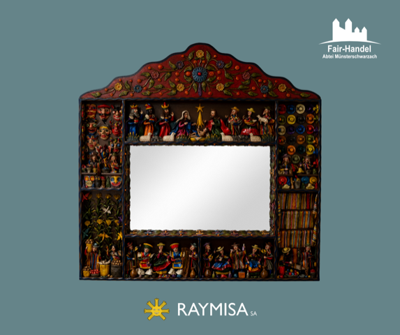 Im Stile eines Retablos – aber ohne Schranktüren – hat Maximiliano das Weihnachtsgeschehen eingebettet in das Leben der andinen Bevölkerung.