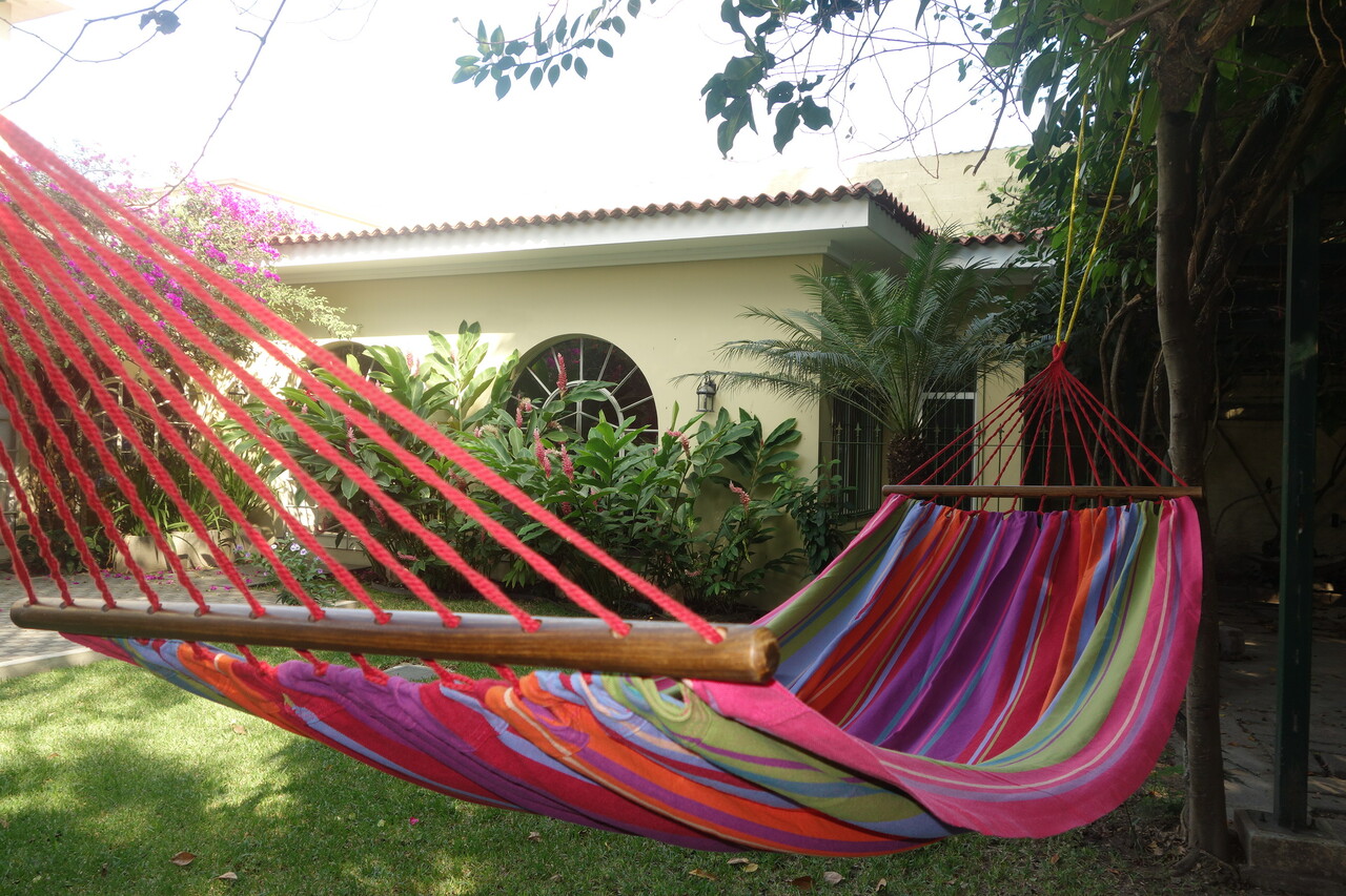 Holen Sie sich Ihre eigene Wohlfühloase in den Garten, oder auf die Terrasse. Die farbenfrohen Hängematten und -sitze von unserem Partner Exporsal aus El Salvador laden zum Entspannen ein. Sie sind die optimale Ruhegelegenheit nach einem stressigen Tag: lesen Sie ein Buch, oder schließen Sie einfach die Augen und geniessen die Sonne.