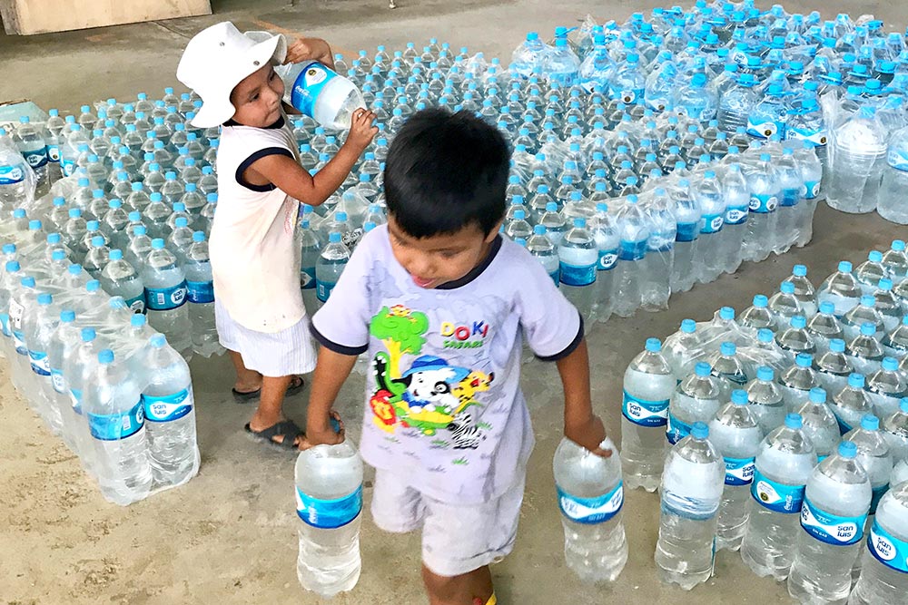Baumaterial wie Zement, Ziegelsteine und Blechdächer wurde in Lima erworben, um die Gemeinschaftswerkstätten und Gemeinschaftszentren in Chulucanas im Norden Perus wieder herzustellen. Es wurden ca. 25 große Werkstätten wieder aufgebaut, um den Familien wieder Arbeit und Broterwerb zu ermöglichen. Die Familien bekamen Blechdächer und Plastikplanen. um sich vor weiteren Regenfällen zu schützen. Dies wurde schriftlich festgehalten, die Übergabe erfolgte durch Unterschrift und Daten der Personen.