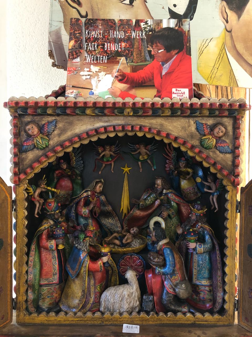 Unser Retablo-Künstler Maximiano Ochante aus Peru war bei uns zu Gast.In einer provisorisch eingerichteten Werkstatt restaurierte er alte, seltene Stücke der Künstlerfamilie Mendivil.