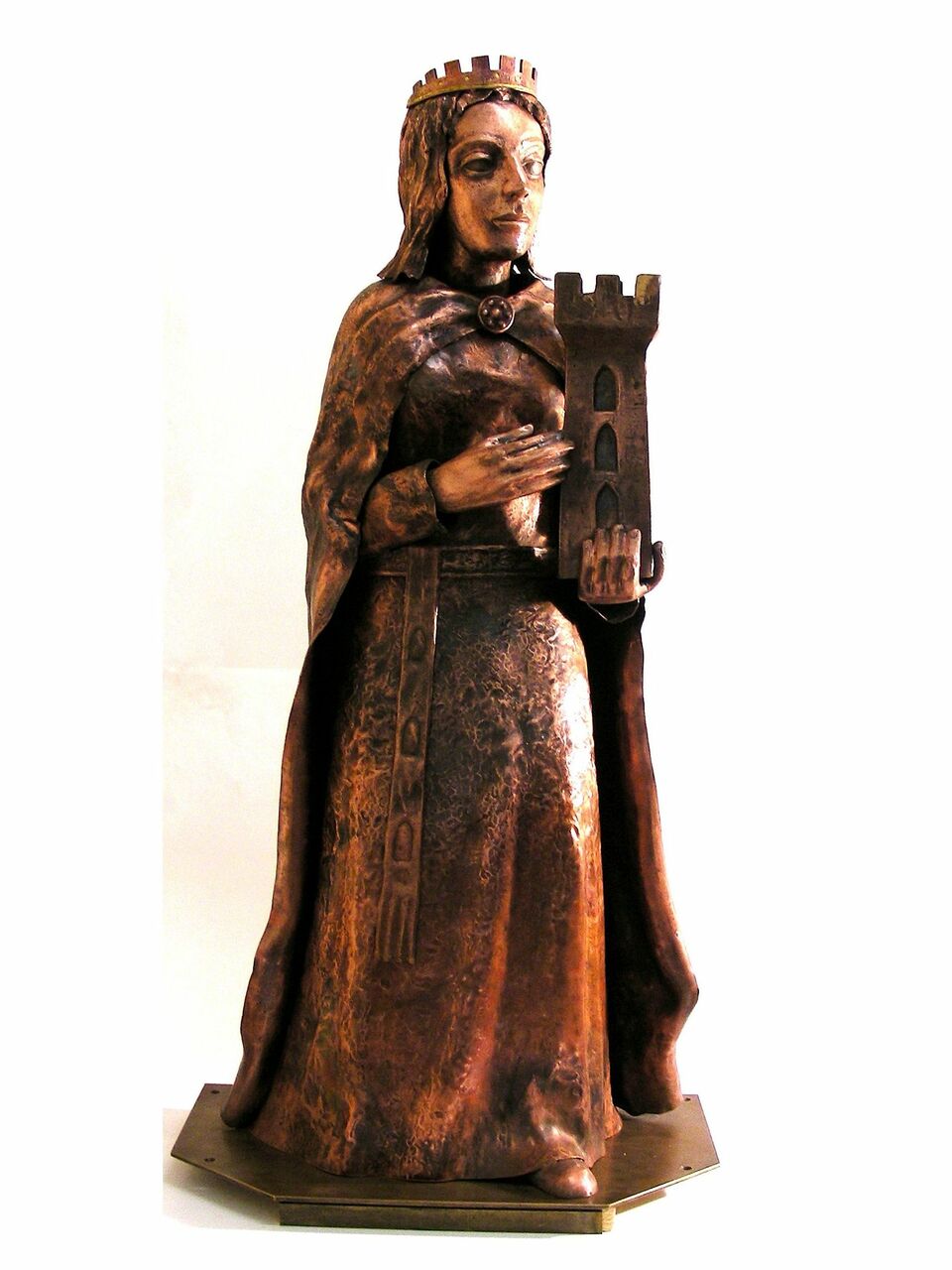 Dies ist die zweite Figur, welche die Goldschmiede für die Kirche in Wüstenrot arbeitete. Vor zwei Jahren entstand ebenfalls in Kupfer die Figur des heiligen Antonius, der mit dem Christuskind tanzt.