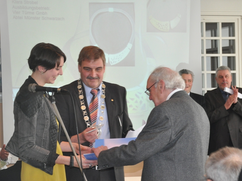 Klara Strobel wird gleich im Anschluss, wie auch unser erfolgreicher Silberschmiedegeselle Dominik Fröhlich aus Escherndorf (Kammer- & Landessieger 2013), den Meisterkurs der Franz-Oberthür-Schule in Würzburg besuchen.