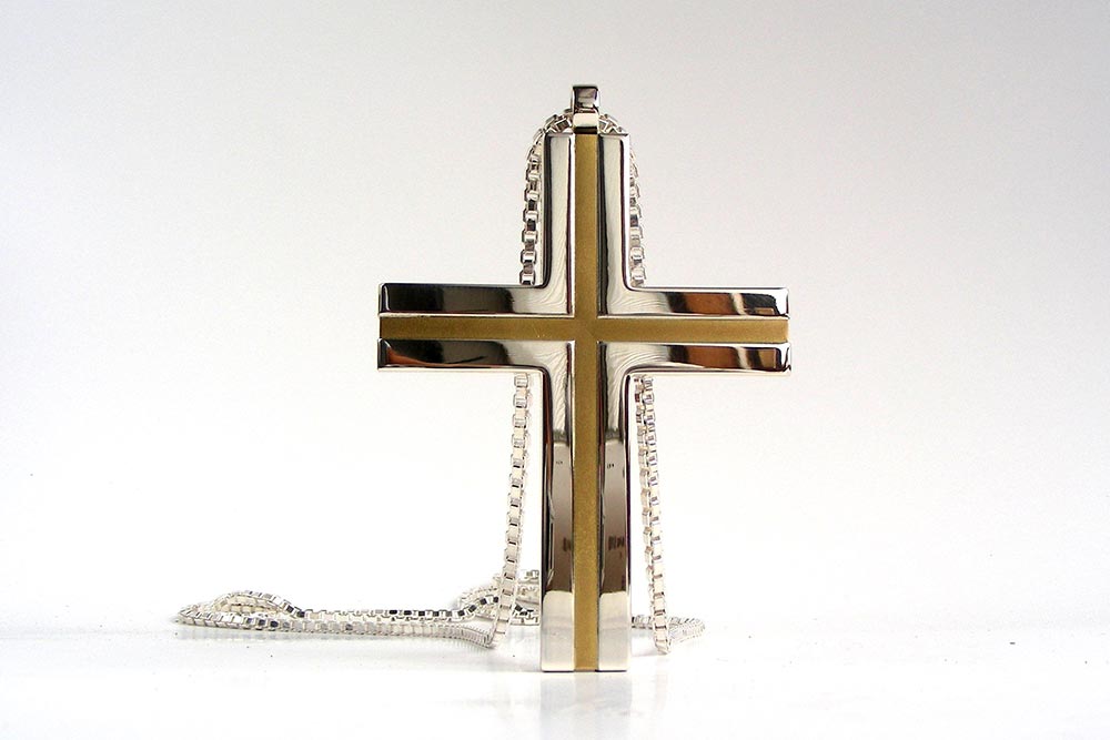 Die Kontakte in die Abtei kamen über den aus Münsterschwarzach stammenden Pater Mauritius Wilde OSB zustande, der seit Ende 2016 neuer Prior von Sant’Anselmo in Rom ist. Gemeinsam mit dem Abtprimas besuchte er Anfang Juni die Goldschmiede. Dabei wurden die Idee für das neue Brustkreuz geboren. Die Entwürfe von Andreas Jurowski wurden anschließend einige Male zwischen Münsterschwarzach und Rom hin- und hergemailt. Dann machte sich Michael Hornung ans Werk und fertigte das ebenso schlichte wie elegante Kreuz aus Silber mit einer vertieften Linie aus 750er Gold.
