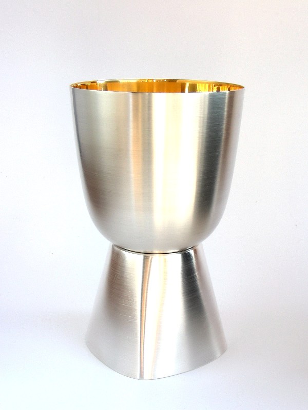 Unter Verwendung verschiedenster Materialien wurden dann die Kelche und Schalen in Handarbeit getrieben, gelötet und ziseliert, um anschließend auf Hochglanz poliert zu werden. In der galvanischen Anlage wurden sie dann vergoldet, um dann fertig montiert zu werden. Ein passendes Etui schützt sie beim Transport und dient zur Aufbewahrung.