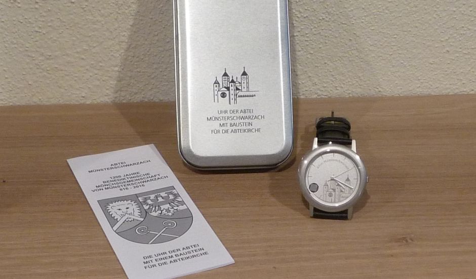 Muschelkalk stammt aus dem Steinbruch, aus dem 1935/36 die Steine für die Abteikirche gebrochen wurden - Stein im Ziffernblatt macht jede Uhr zu einem Unikat