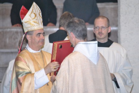 Der Heilige Benedikt hat die zentrale Bedeutung Jesu Christi für das Leben jedes Christen und vor allem der Mönche unterstrichen, die der Berufung zu einem Leben in Vollkommenheit über die Evangelischen Räte des Gehorsams, der Keuschheit und der Armut folgen. Er fordert dazu auf, nichts der Liebe zu Jesus Christus vorzuziehen, wenn er sagt: „Nihil amori Christi praeponere". Seine Schüler sind dem Charisma des Heiligen Benedikt, dem Gründer des Benediktinerordens, gefolgt. Sie waren bestrebt, diese Maxime in ihrem persönlichen und gemeinschaftlichen Leben in die Praxis umzusetzen. Und unter diesem Anspruch leben die Mönche durch viele Generationen auch an diesem Ort, so daß nunmehr die beachtliche Periode von 1.200 Jahren erfüllt ist. Daher danken wir dem guten und barmherzigen Gott, indem wir den Lobpreis wiederholen, der eingemeißelt in die spirituellen Steine dieser bekannten Benediktinerabtei von Münsterschwarzach ist: Ehre sei dem Vater und dem Sohn und dem Heiligen Geist.