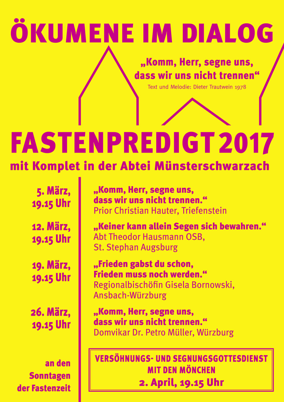 Zu den Fastenpredigten sowie zum Versöhnungs- und Segnungsgottesdienst laden die Mönche von Münsterschwarzach herzlich ein.