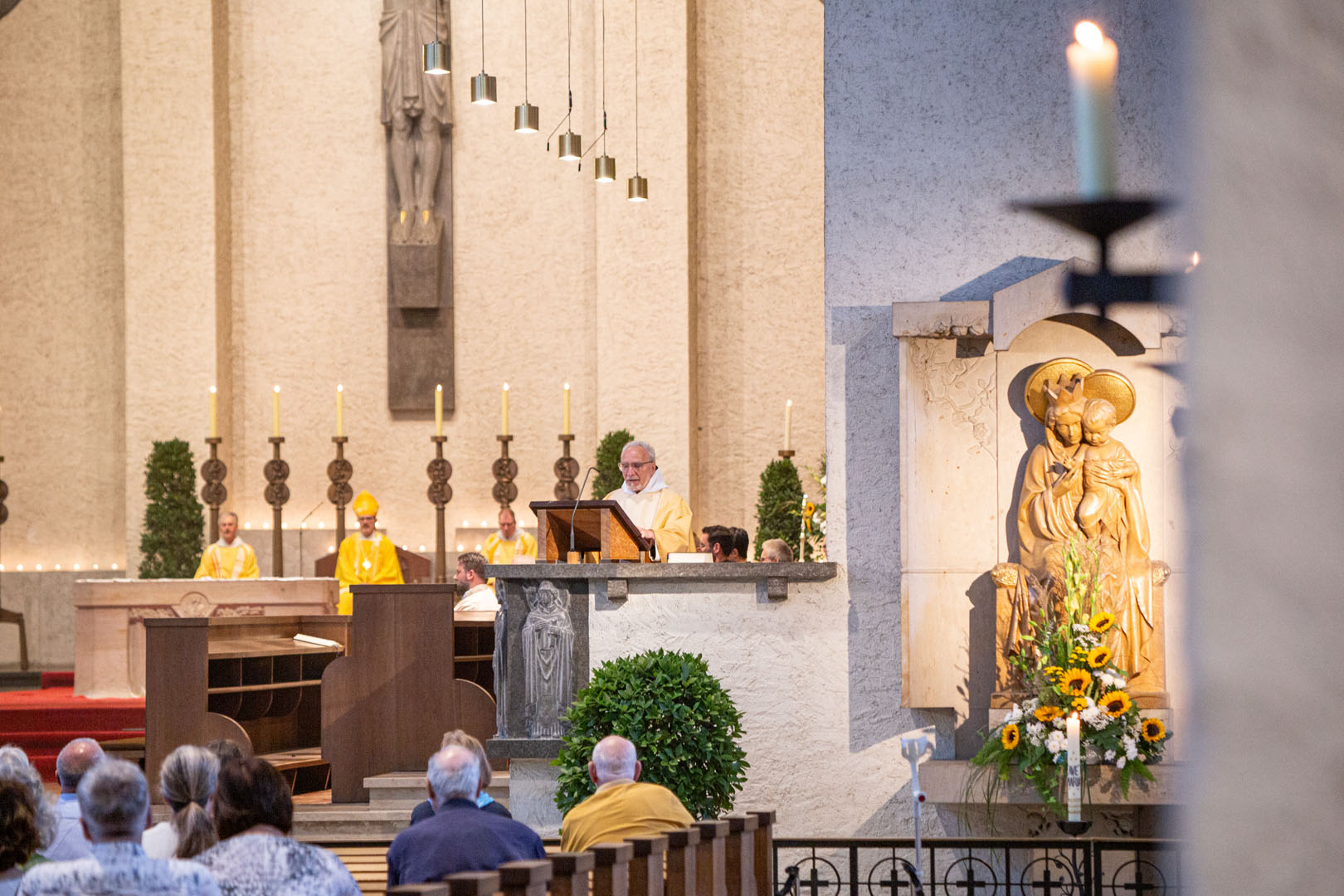 Dieser Satz aus der Benediktsregel sei das wesentliche Motto des Mönchs- und Christenweges. Jetzt hoffe ich, dass mit den wenigen Strichen meiner Kirchenführung durch den 85jährigen Bau auch die Jahresringe meiner Mitbrüder der Jubiläumsjahrgänge beschrieben waren. Dass ihre Lebenspredigt ebenfalls darin hörbar wurde.