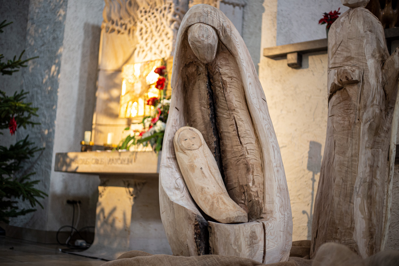 Ja, wir sollen das Kind schützen und bergen wie Maria in unserer Krippe, die Pater Zacharias in diesem Jahr gestaltet hat. Wir tragen alle das Christkind in unserem Schoß, es ist nicht weg, es ist da. Weil wir da sind mit dem Kind, weil das Kind da ist!
