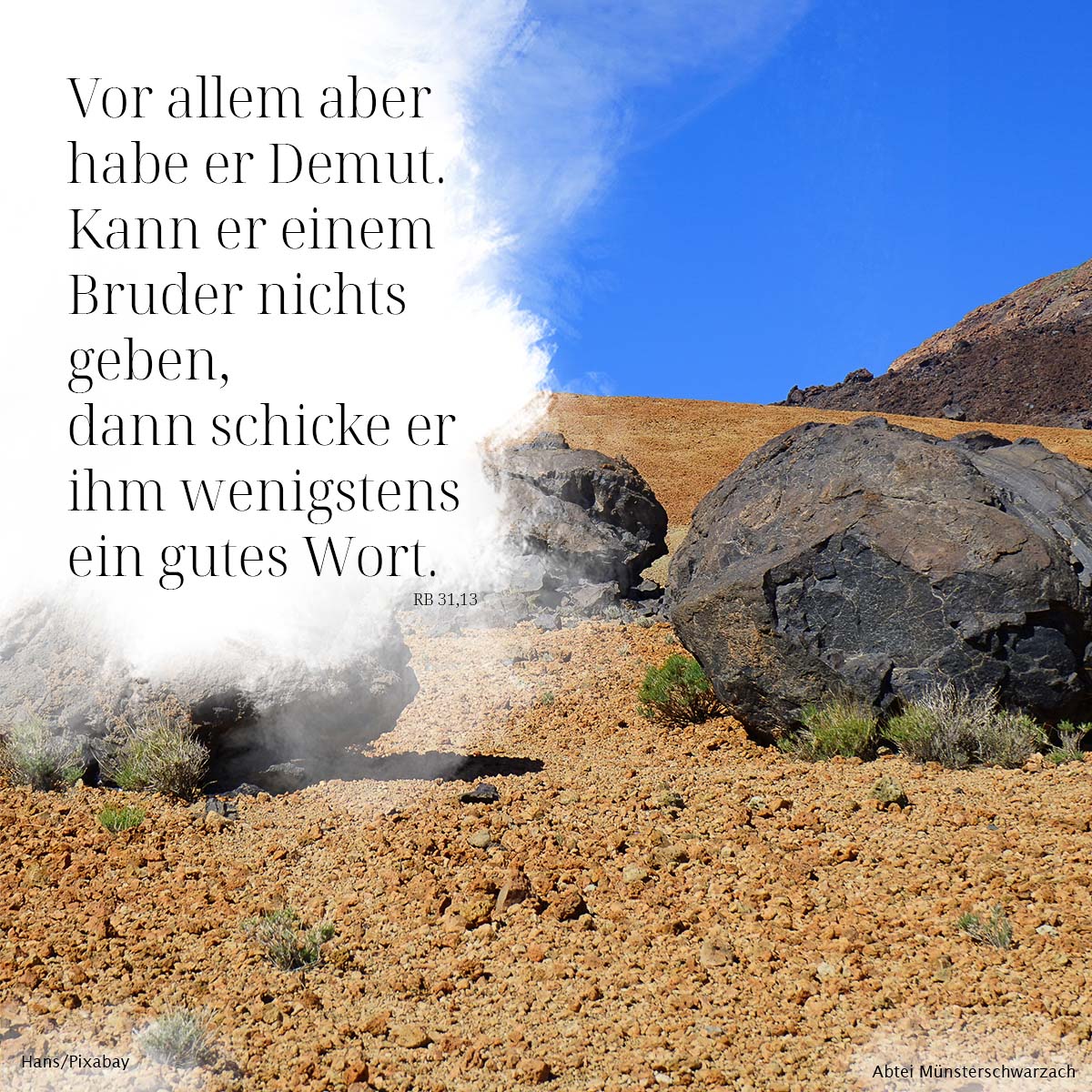 13. Vor allem aber habe er Demut. Kann er einem Bruder nichts geben, dann schenke er ihm wenigstens ein gutes Wort.