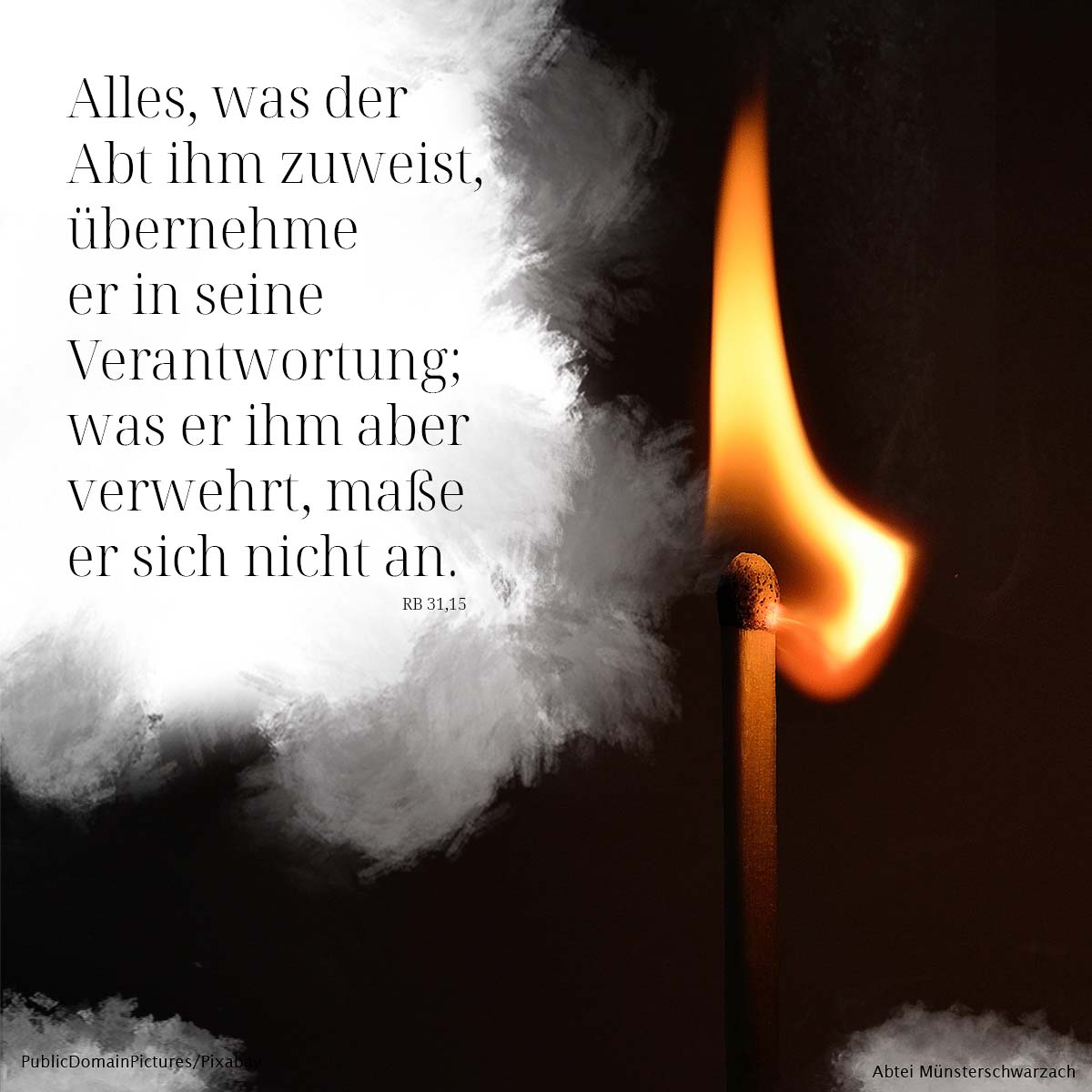 15. Alles, was der Abt ihm zuweist, übernehme er in seine Verantwortung; was er ihm aber verwehrt, maße er sich nicht an.