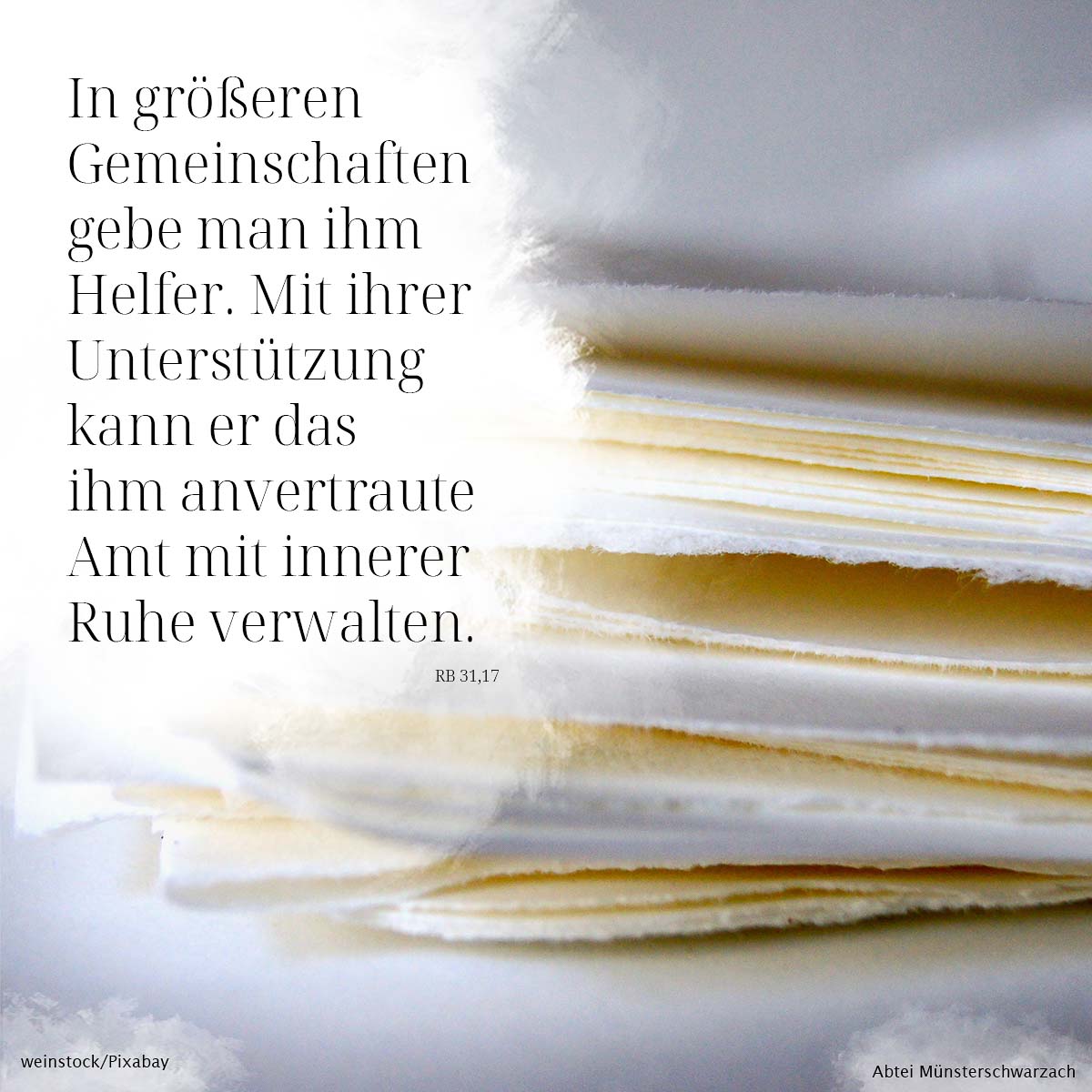 17. In größeren Gemeinschaften gebe man ihm Helfer. Mit ihrer Unterstützung kann er das ihm anvertraute Amt mit innerer Ruhe verwalten.