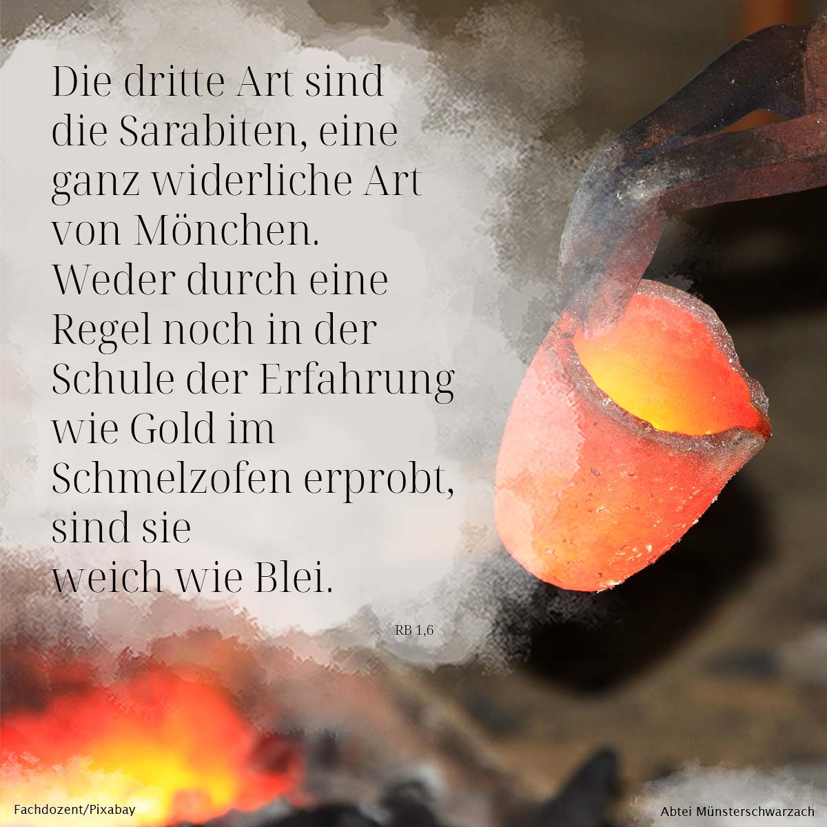 6. Die dritte Art sind die Sarabaiten, eine ganz widerliche Art von Mönchen. Weder durch eine Regel noch in der Schule der Erfahrung wie Gold im Schmelzofen erprobt, sind sie weich wie Blei.