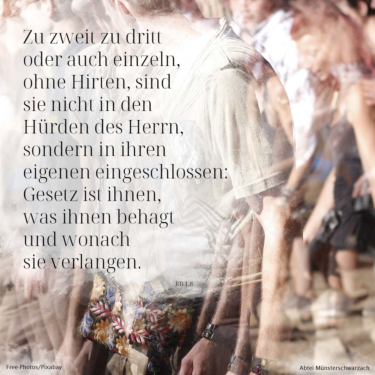 8. Zu zweit oder zu dritt oder auch einzeln, ohne Hirten, sind sie nicht in den Hürden des Herrn, sondern in ihren eigenen eingeschlossen: Gesetz ist ihnen, was ihnen behagt und wonach sie verlangen.