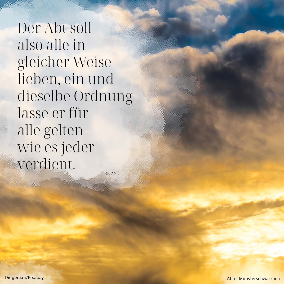 22. Der Abt soll also alle in gleicher Weise lieben, ein und dieselbe Ordnung lasse er für alle gelten - wie es jeder verdient.