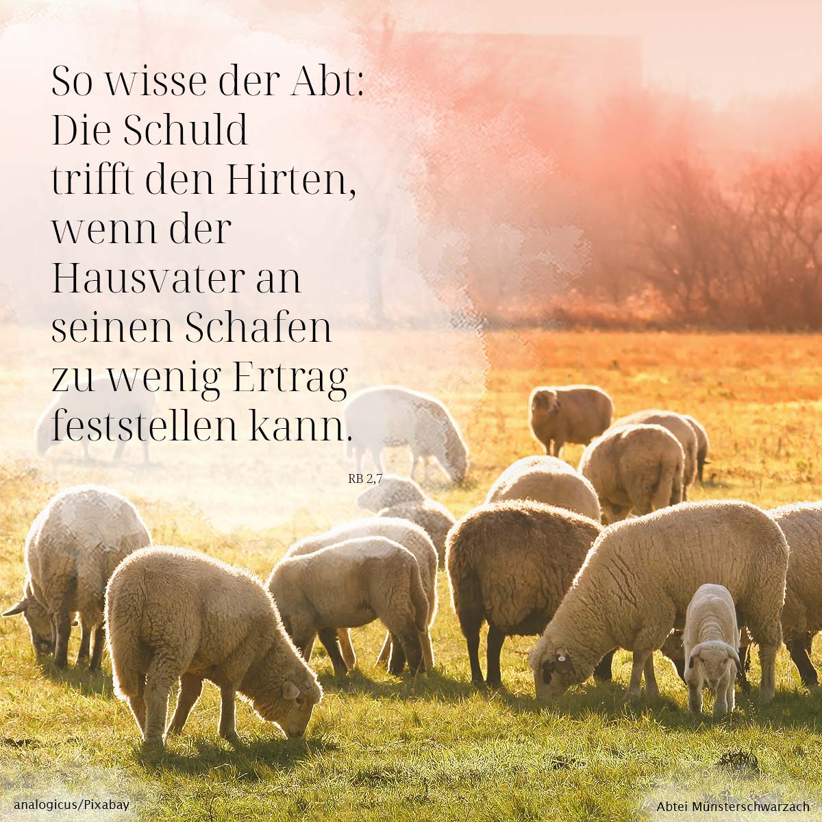 7. So wisse der Abt: Die Schuld trifft den Hirten, wenn der Hausvater an seinen Schafen zu wenig Ertrag feststellen kann.