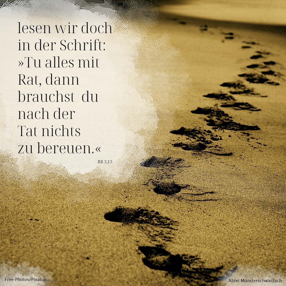 13. Lesen wir doch in der Schrift: »Tu alles mit Rat, dann brauchst du nach der Tat nichts zu bereuen.«