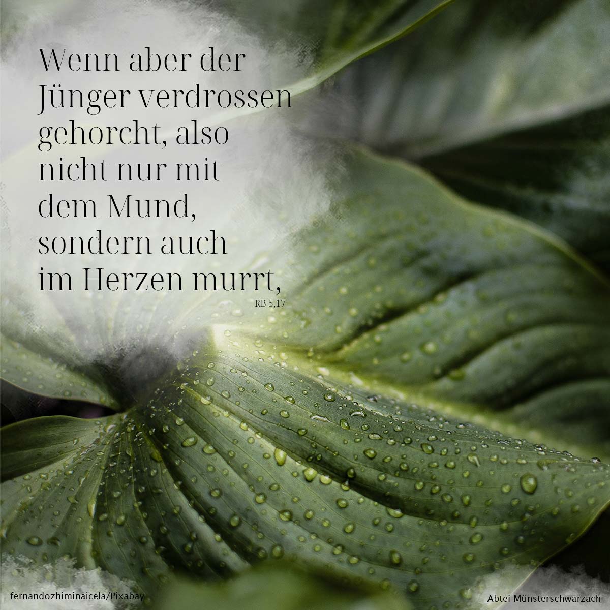 17. Wenn aber der Jünger verdrossen gehorcht, also nicht nur mit dem Mund, sondern auch im Herzen murrt,