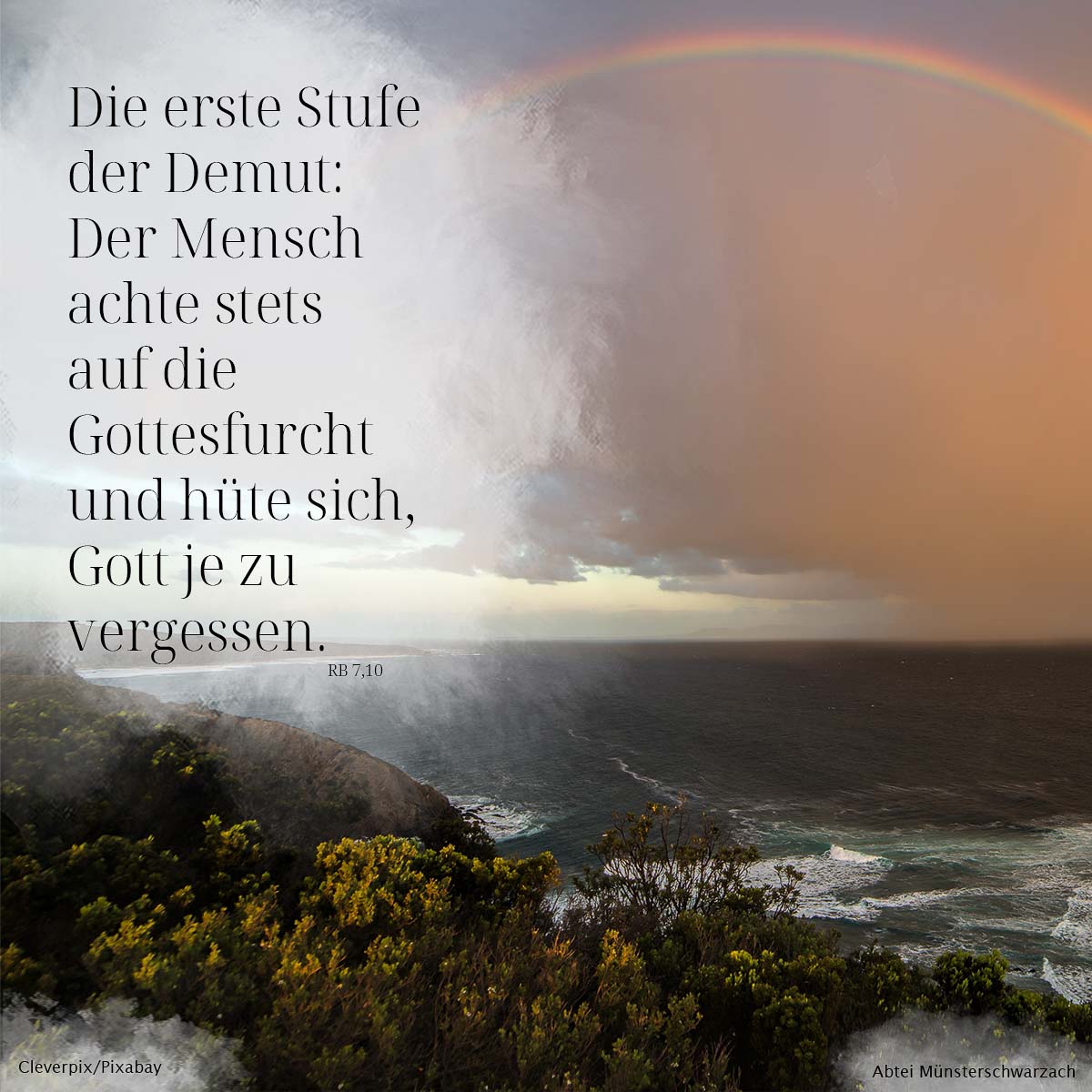 Dennoch bildet das Fundament und die Basis die Gottesfurcht. Benedikt stellt in diesem Vers auch das Gegenteil, Vergessenheit, gegenüber.