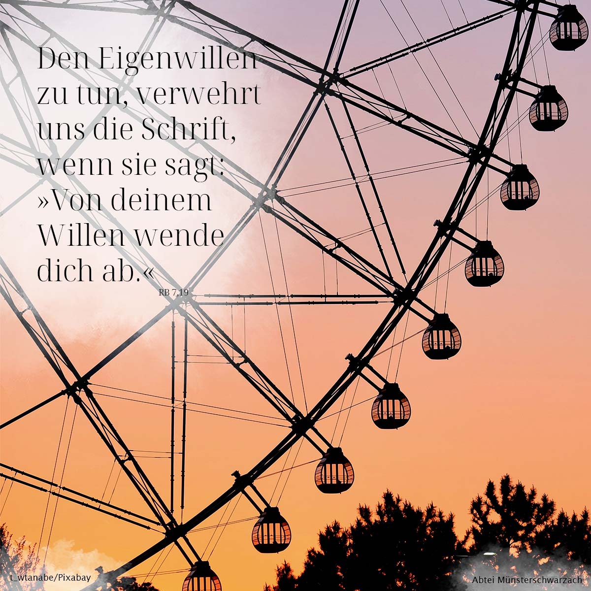 19. Den Eigenwillen zu tun, verwehrt uns die Schrift, wenn sie sagt: »Von deinem Willen wende dich ab.«