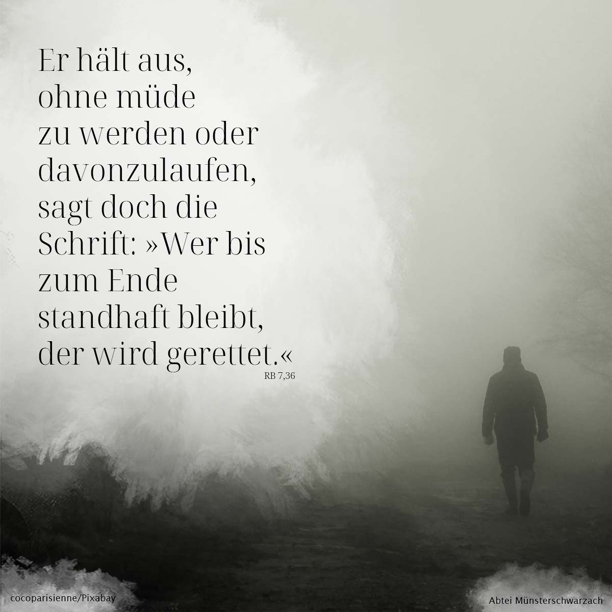 36. Er hält aus, ohne müde zu werden oder davonzulaufen, sagt doch die Schrift: »Wer bis zum Ende standhaft bleibt, der wird gerettet.«