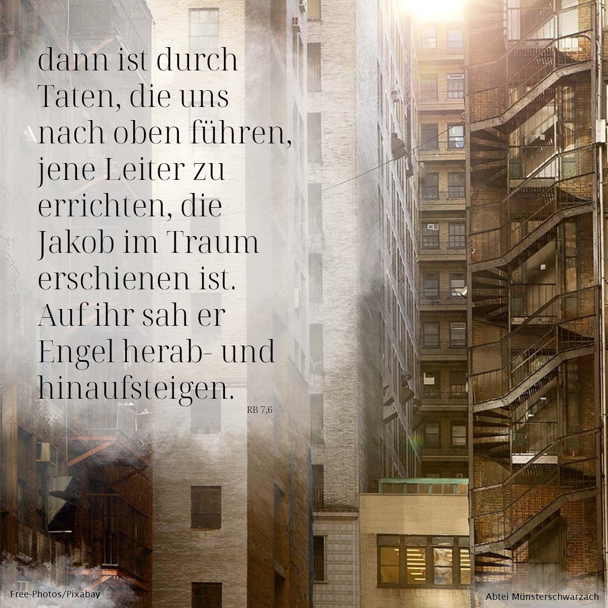 6. dann ist durch Taten, die uns nach oben führen, jene Leiter zu errichten, die Jakob im Traum erschienen ist. Auf ihr sah er Engel herab- und hinaufsteigen.