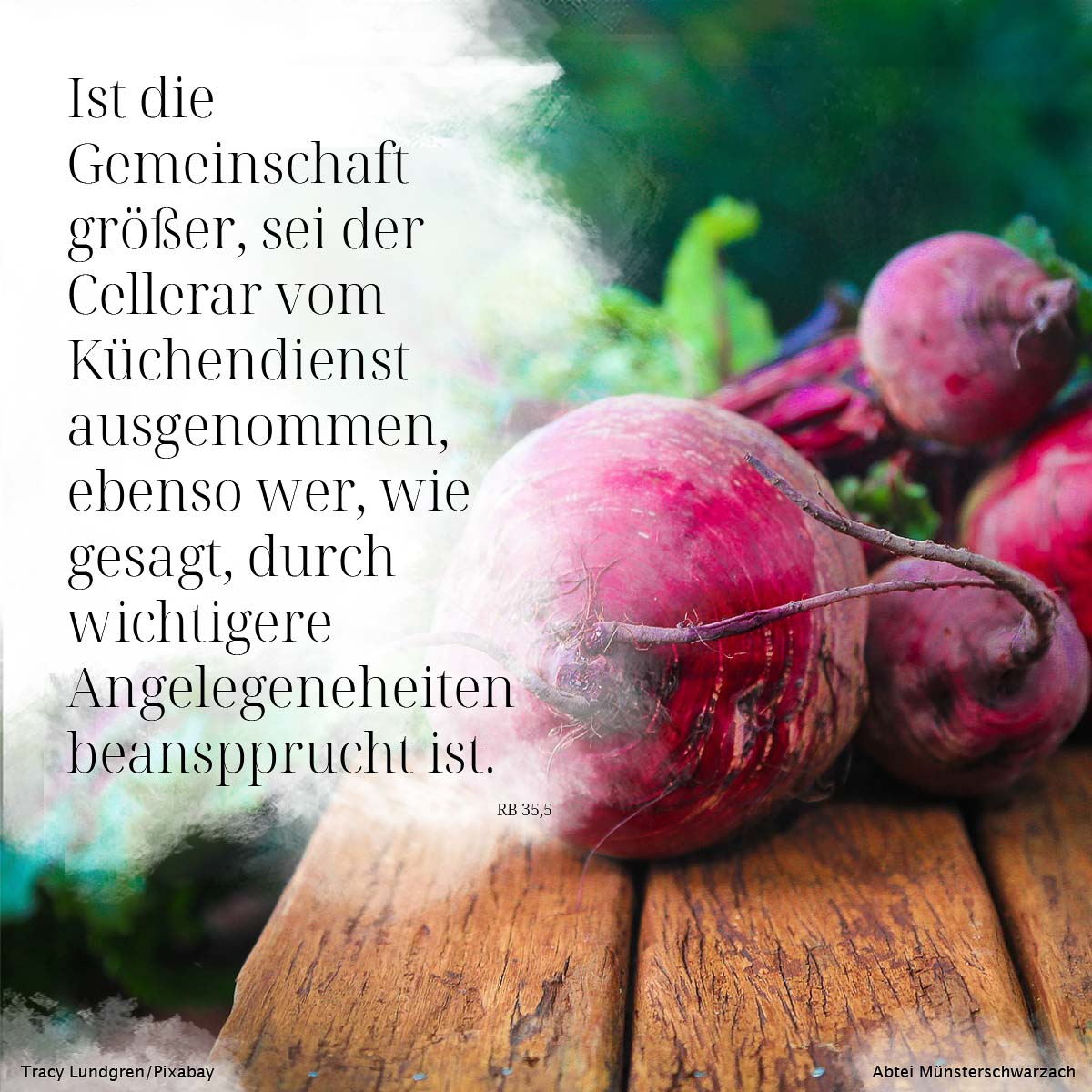 5. Ist die Gemeinschaft größer, sei der Cellerar vom Küchendienst ausgenommen, ebenso wer, wie gesagt, durch wichtigere Angelegenheiten beansprucht ist.