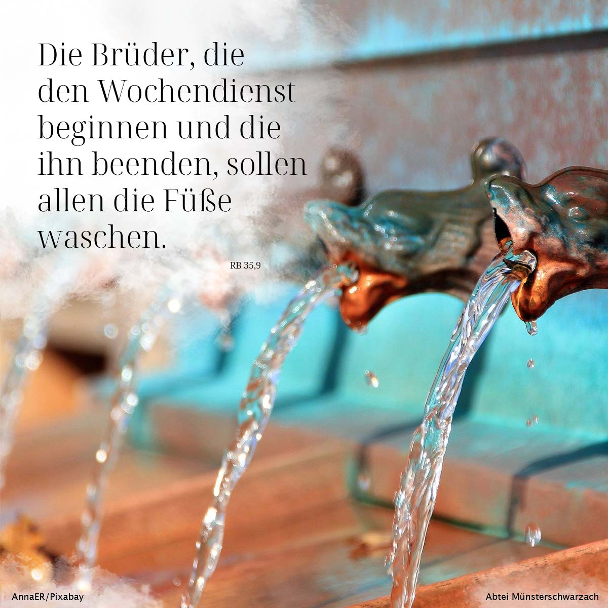 9. Die Brüder, die den Wochendienst beginnen und die ihn beenden, sollen allen die Füße waschen.
