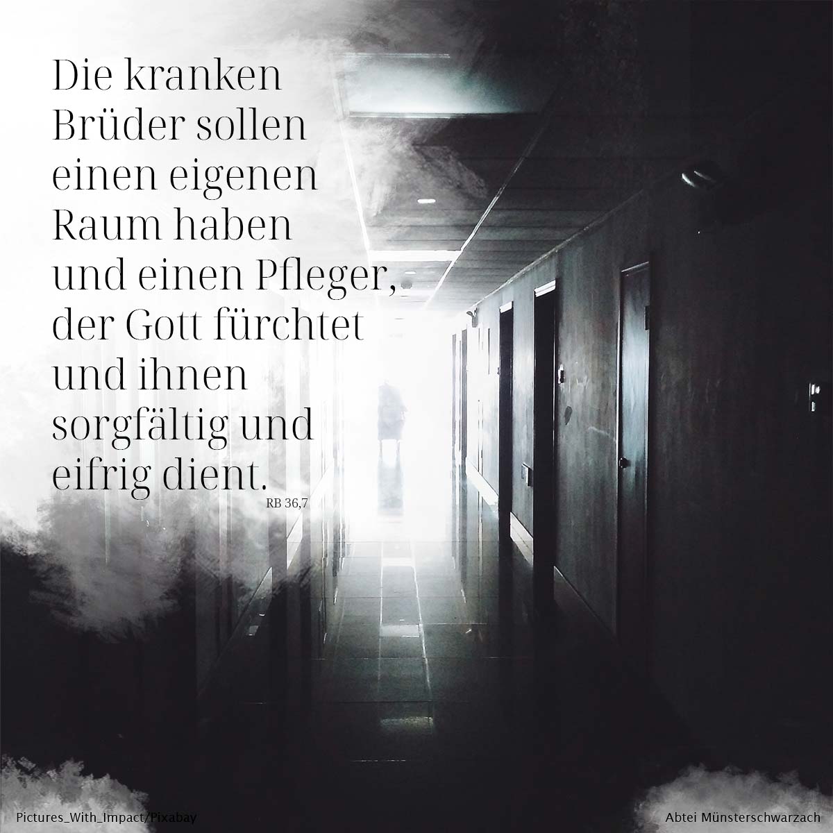 7. Die kranken Brüder sollen einen eigenen Raum haben und einen Pfleger, der Gott fürchtet und ihnen sorgfältig und eifrig dient.