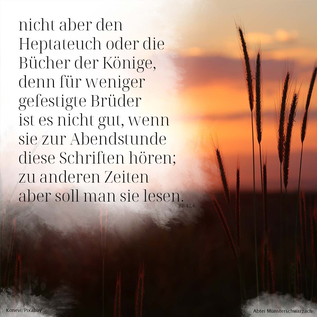 4. nicht aber den Heptateuch oder die Bücher der Könige, denn für weniger gefestigte Brüder ist es nicht gut, wenn sie zur Abendstunde diese Schriften hören; zu anderer Zeit aber soll man sie lesen.