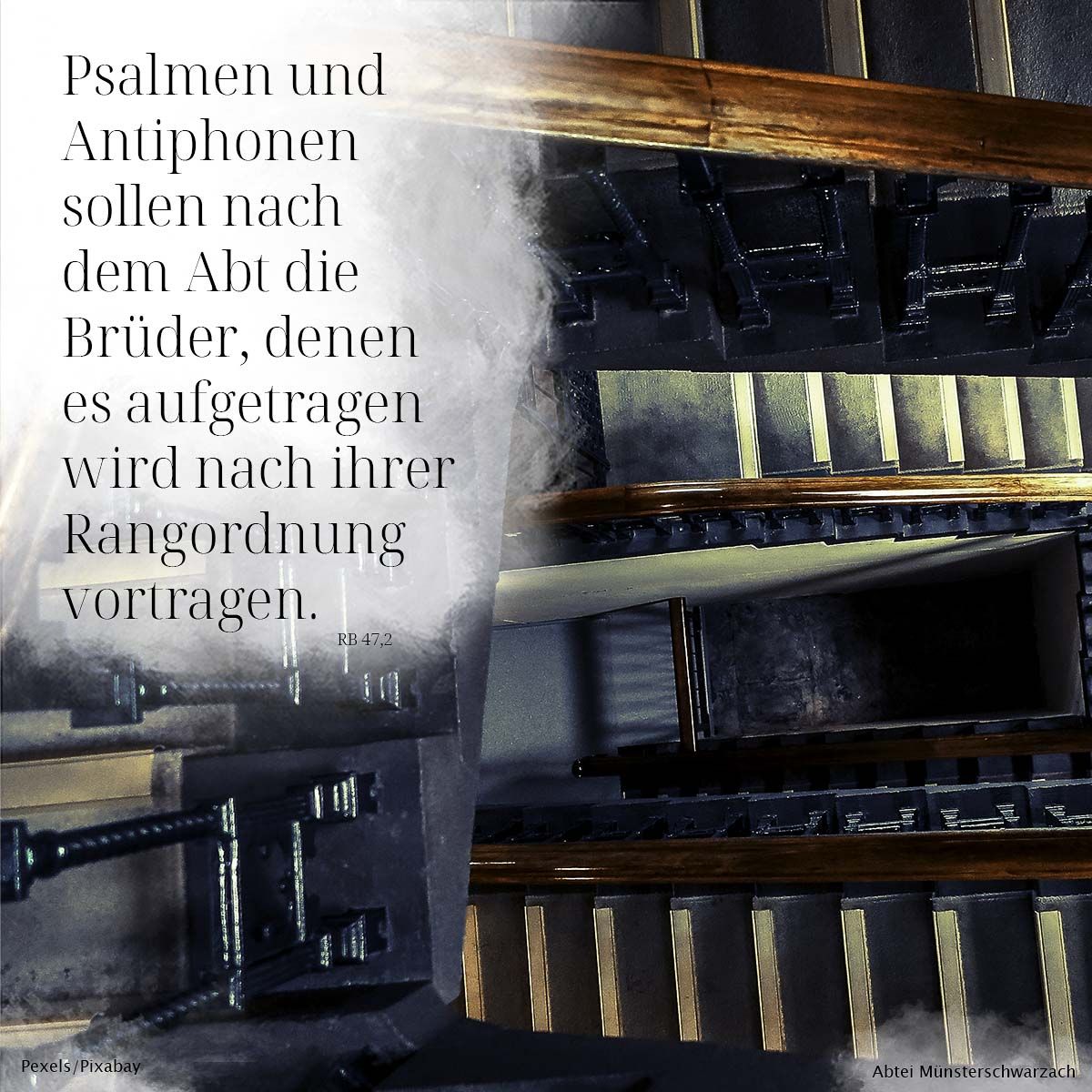 2. Psalmen und Antiphonen sollen nach dem Abt die Brüder, denen es aufgetragen wird, nach ihrer Rangordnung vortragen.