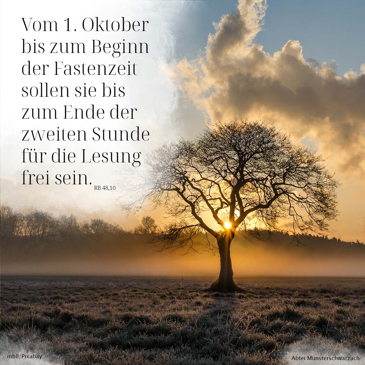 10. Vom 1. Oktober bis zum Beginn der Fastenzeit sollen sie bis zum Ende der zweiten Stunde für die Lesung frei sein.