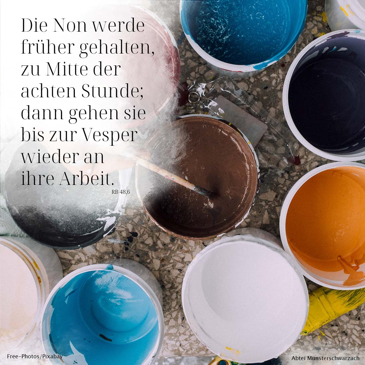 6. Die Non werde früher gehalten, zur Mitte der achten Stunde; dann gehen sie bis zur Vesper wieder an ihre Arbeit.